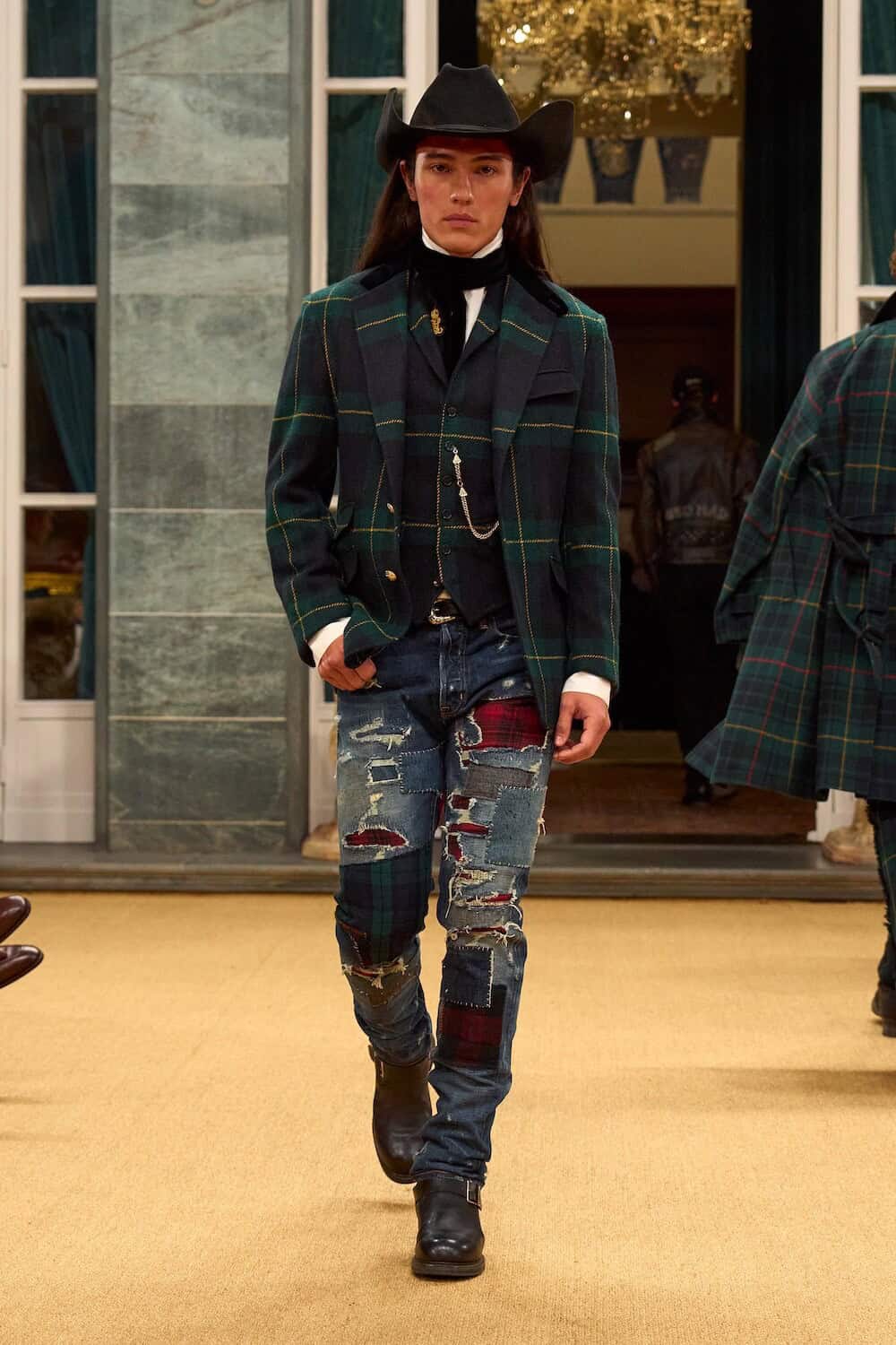 Throughout both collections, handmade belt buckles and silver jewellery with turquoise accents—created in collaboration with Neil Zarama of the Chiricahua Apache Nation—added a tactile sense of heritage. Part of Ralph Lauren’s Authentic Makers program, the partnership celebrates traditional craftsmanship without freezing it in time, allowing heritage techniques to live comfortably in the present.