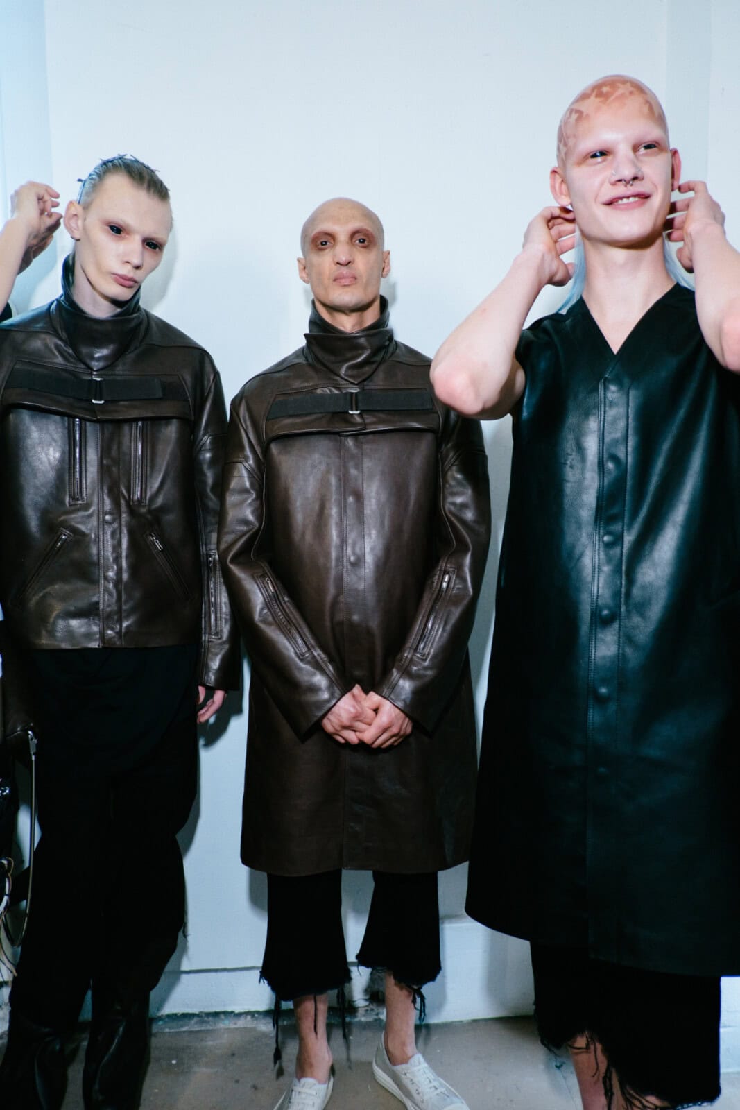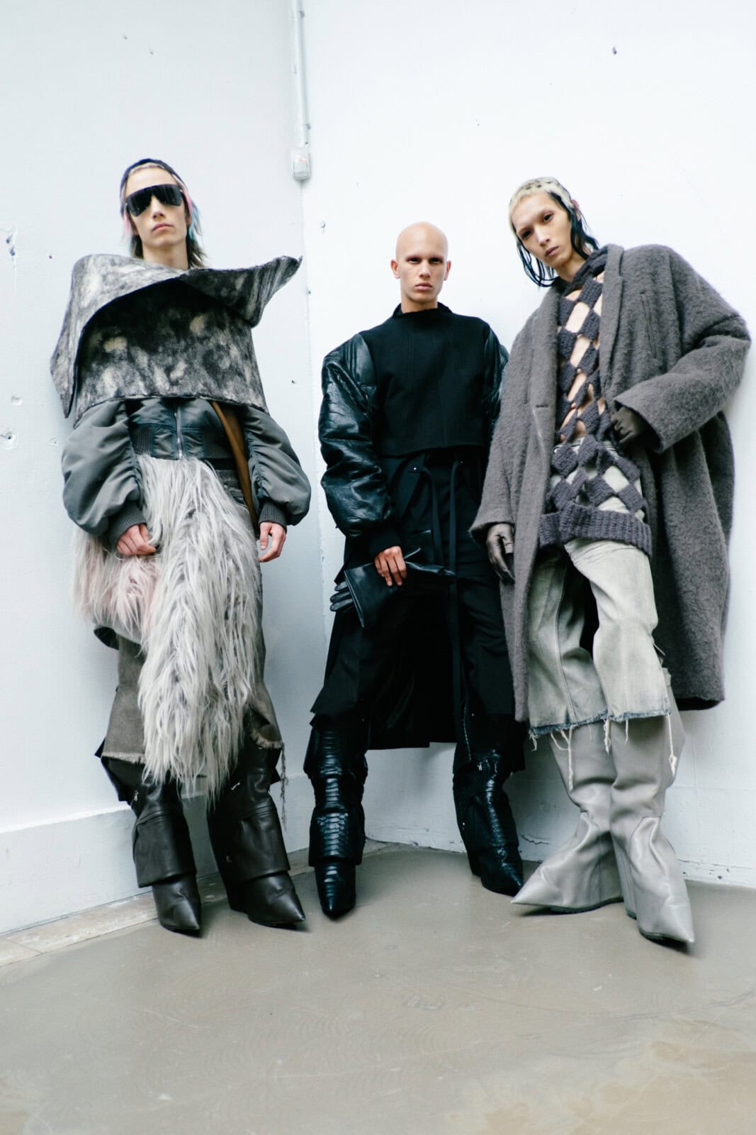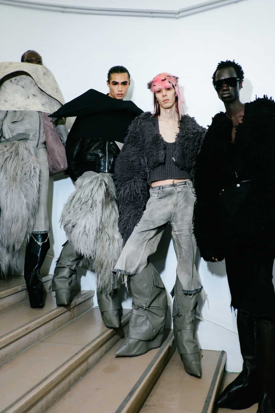 There were flashes of humour and perversity: clownish trainers, yarn-spilling cardigans resembling animal carcases and floor-length leather tassels that erased the face entirely. Colours stayed mostly black, beige and brown, softened by butter yellow and muted pink. Punkish pastel skullets, heavy face-shield sunglasses and slow, ritualised movement sealed the cultish mood. Less alien than past seasons, perhaps – but still very much creatures from another dimension.