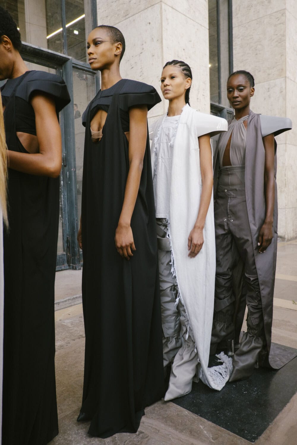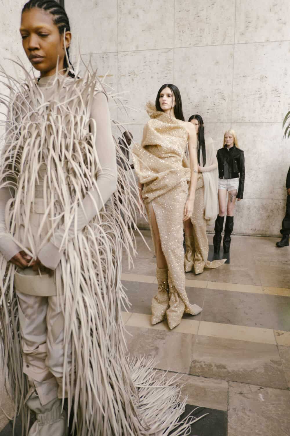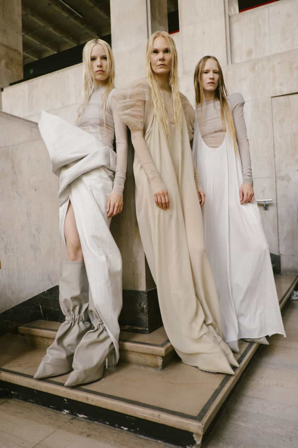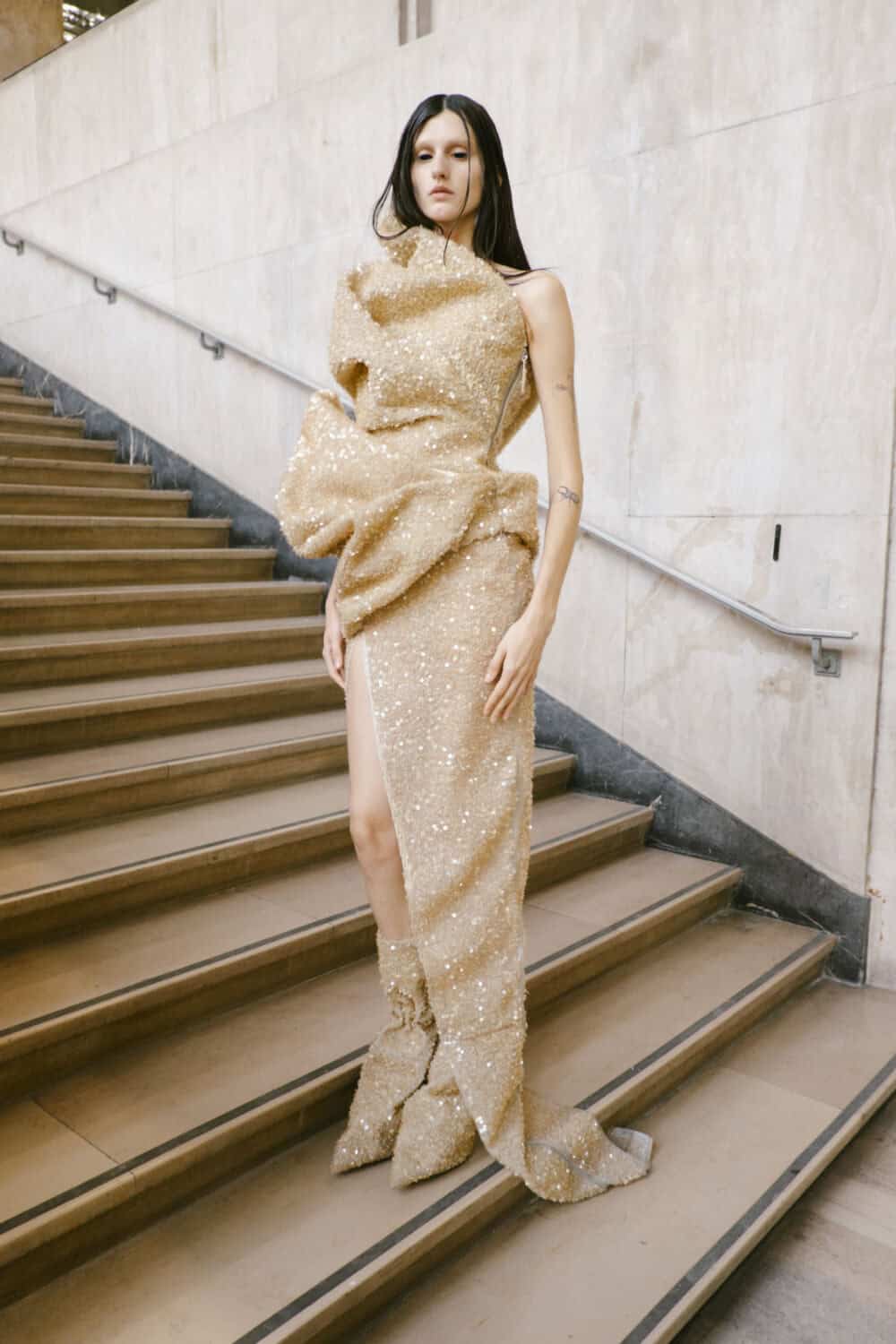 At Rick Owens’ SS26 show, models trekked down a massive scaffolding staircase before trudging through a calf-high pool of water at the Palais de Tokyo. The whole thing felt like a baptism in Owens’ world – dangerous in theory, but in practice? Hardly a single wobble. The Owens cult is unshakable, even in 12cm thigh-high hoof boots – because the higher the heel the closer to heaven, right?