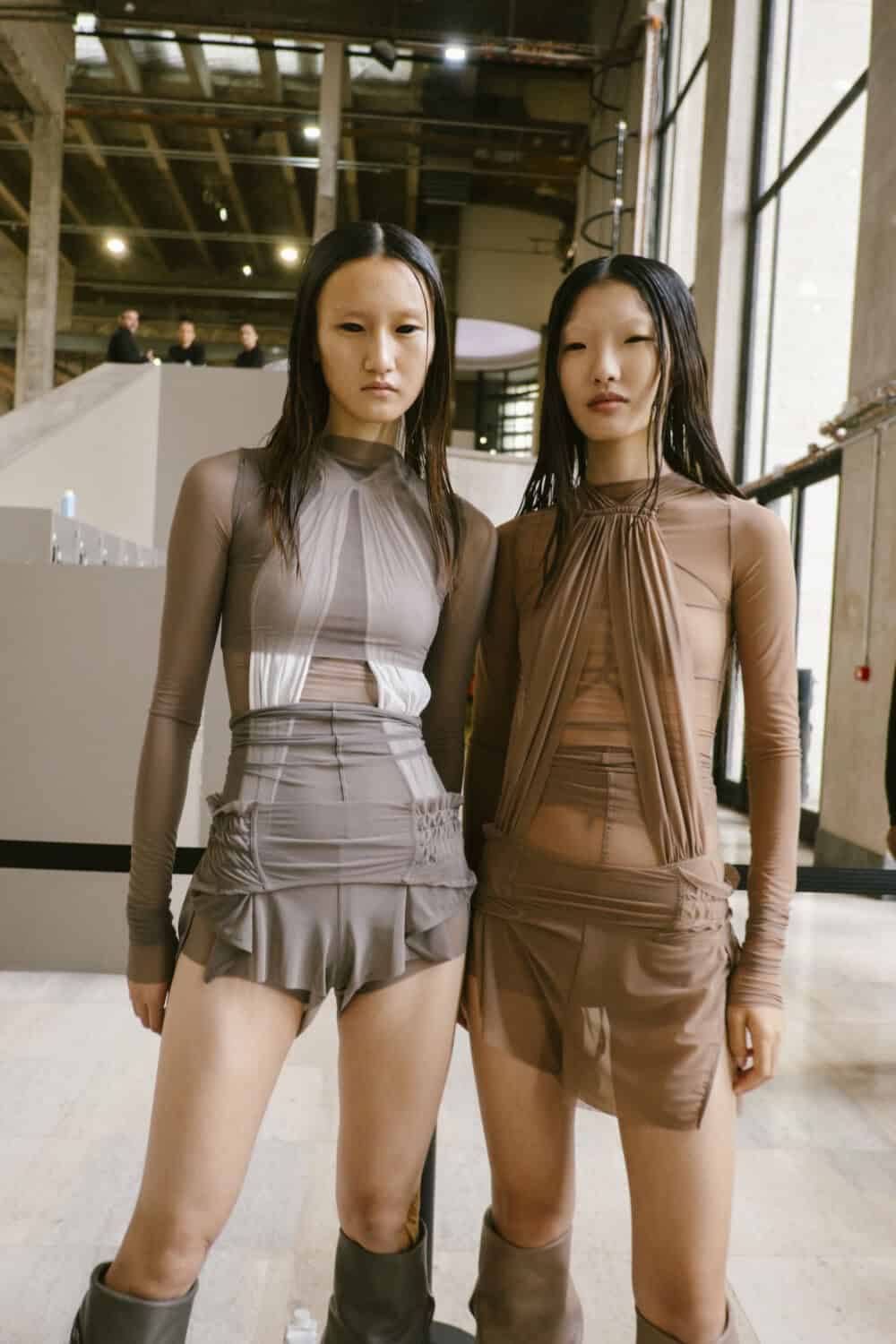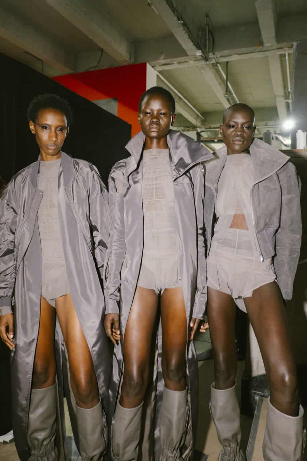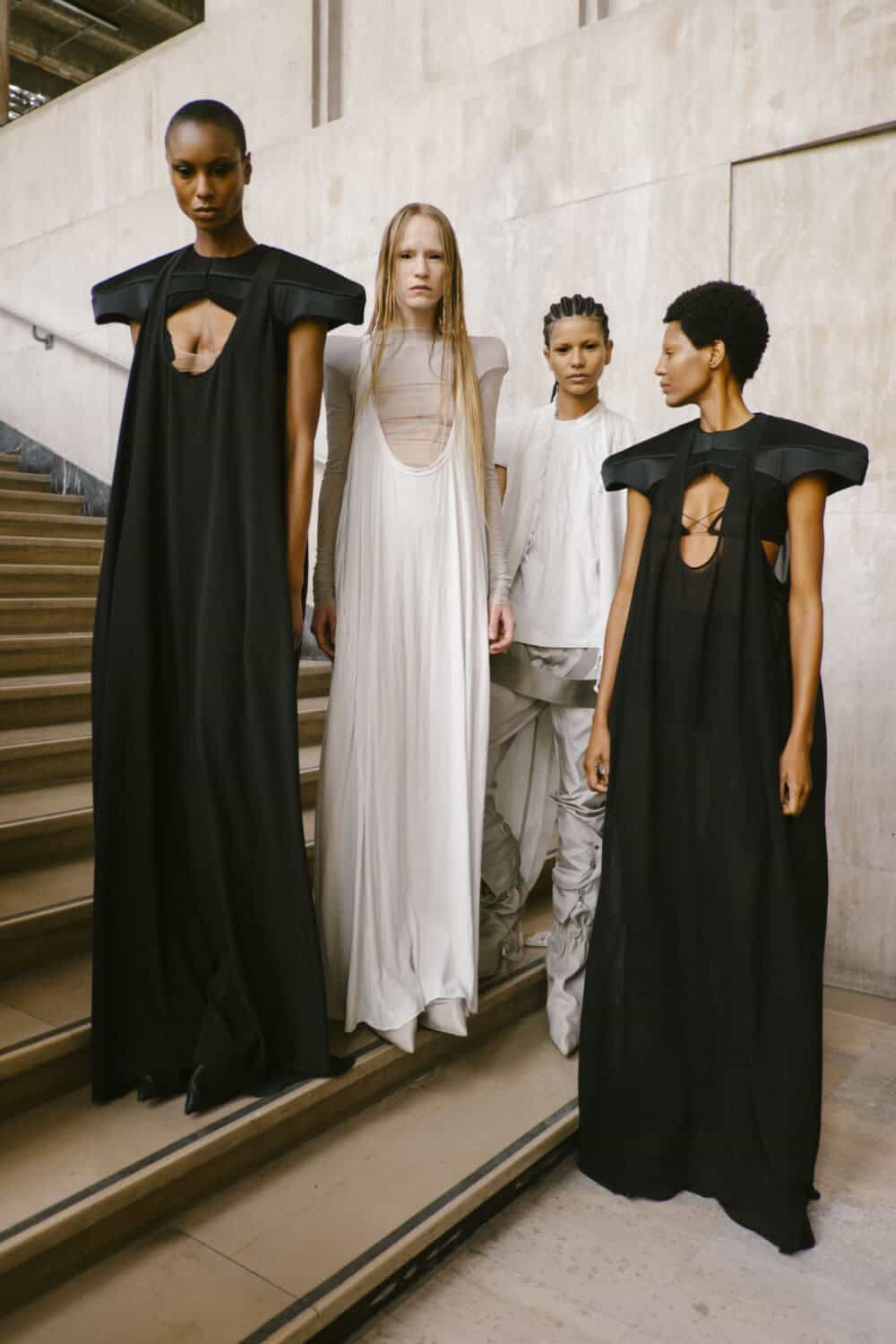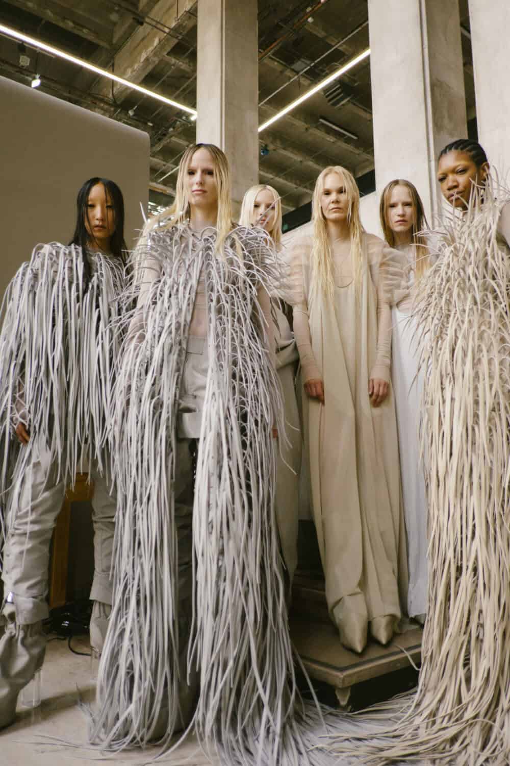 At Rick Owens’ SS26 show, models trekked down a massive scaffolding staircase before trudging through a calf-high pool of water at the Palais de Tokyo. The whole thing felt like a baptism in Owens’ world – dangerous in theory, but in practice? Hardly a single wobble. The Owens cult is unshakable, even in 12cm thigh-high hoof boots – because the higher the heel the closer to heaven, right?