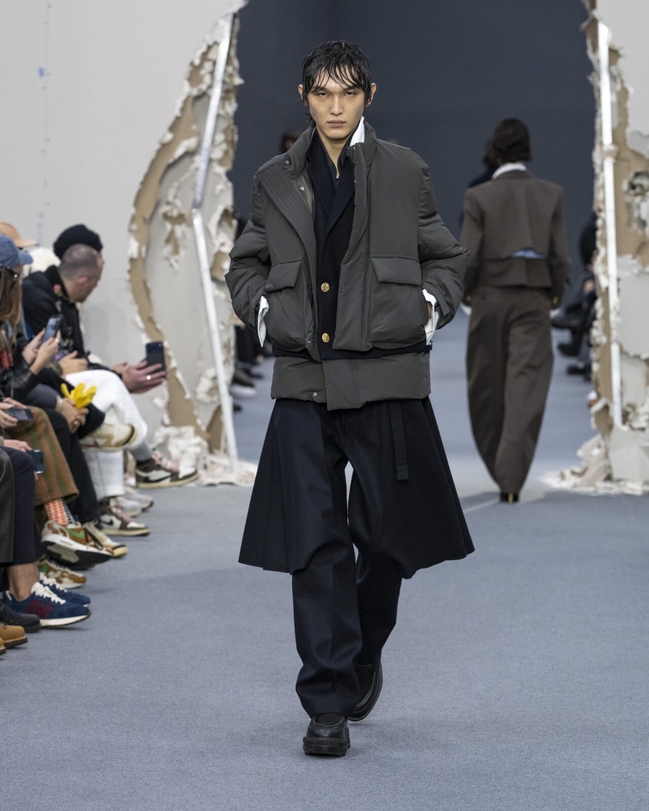 Wouldn’t it be lovely if every Sunday could kickstart with a Sacai show? Chitose Abe’s pattern-cutting wizardry never fails to amaze. Yet, her hybrid wonders this time around packed an extra punch. These were clothes you wanted to snatch straight off the catwalk and plonk in your own wardrobe, touring through a variety of garment categories with total ease and experimental bliss.