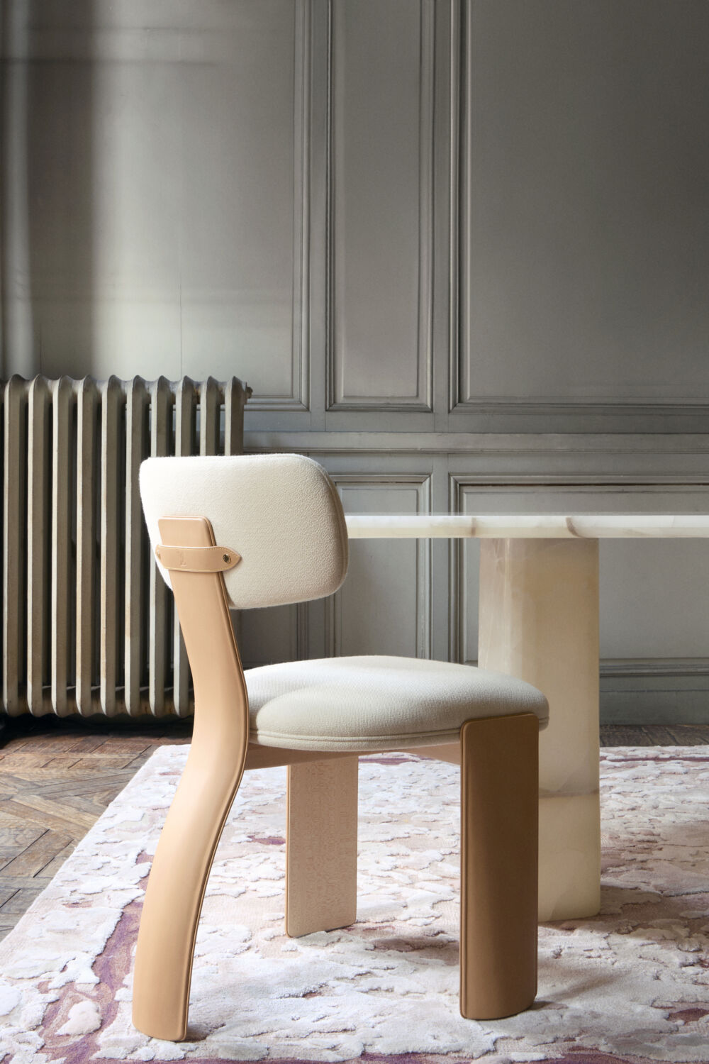 Now picture yourself in Charlotte Perriand’s apartment — one of the great icons of 20th century design. Everything is as sophisticated and functional, with geometry working overtime to create furniture that’s as beautiful as it is useful. For this year’s Salone, Saint Laurent paid tribute to Perriand by reviving four of her exceptional furniture designs that were originally created between 1943 and 1967. Handpicked by Anthony Vaccarello, the pieces had only ever existed as sketches or prototypes until now. The brand meticulously reproduced and reissued them as limited-edition, made-to-order works of art. Some were originally designed by Perriand for her own homes around the world, as well as for a Parisian diplomat’s residence. The result is an exclusive vision of design that feels unmistakably French — chic, clever, and absolutely timeless.