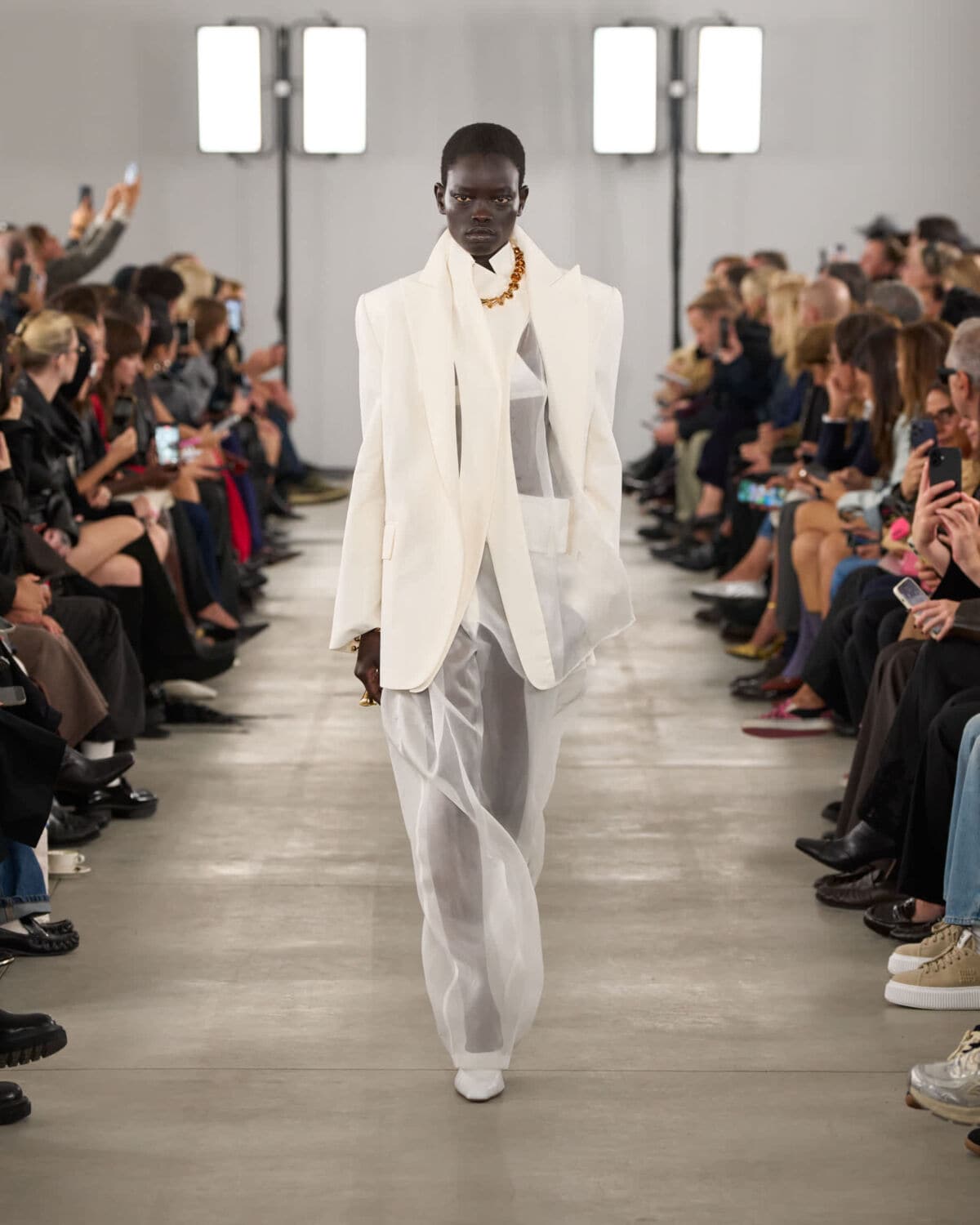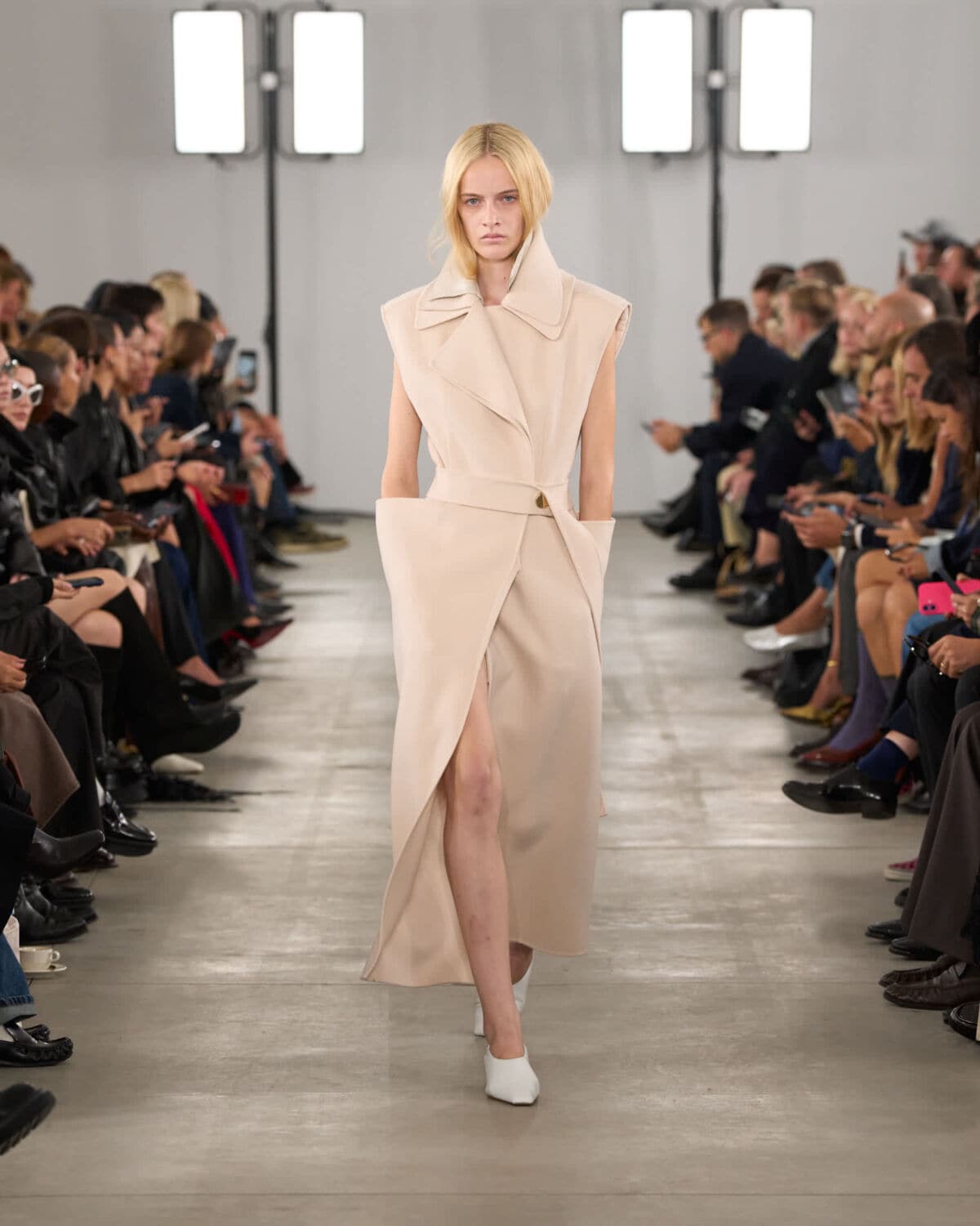 Set inside Milan’s Frigoriferi Milanesi – once a space for preservation, now reimagined – Sportmax’s SS26 show offered a clear-eyed take on softness and structure. The collection moved with a quiet confidence, balancing dreamy fabrications with sharp, urban functionality.