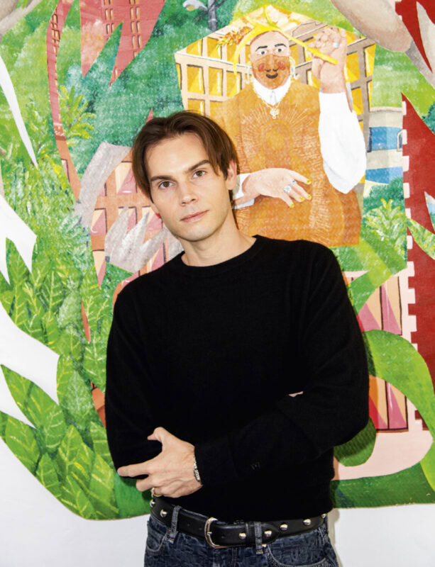 Chris wears jumper by ELDER STATESMEN, jeans by ACNE STUDIOS, watch by CARTIER