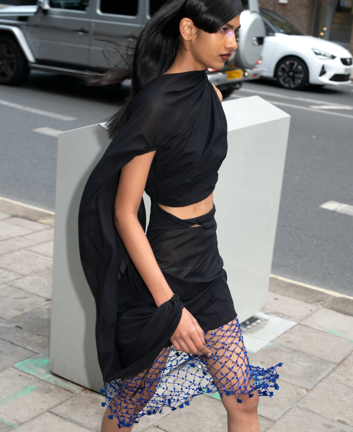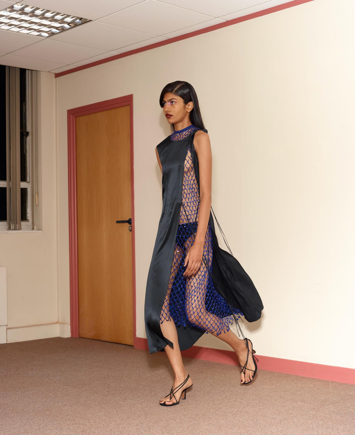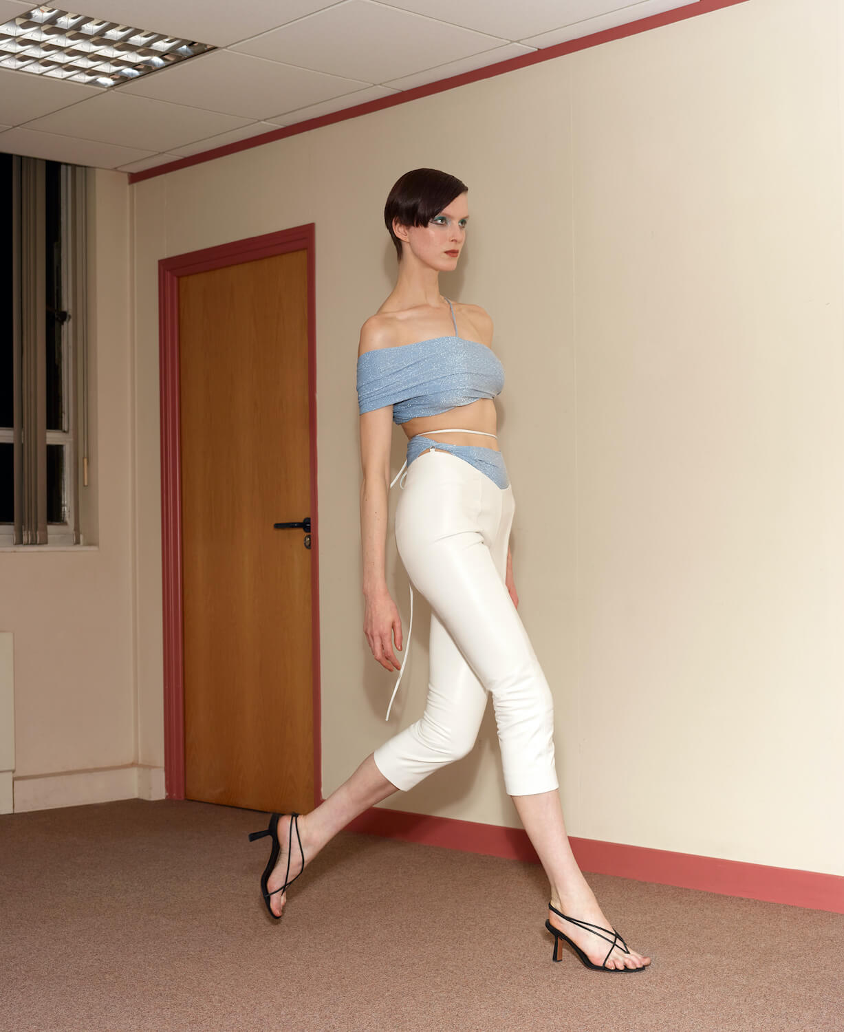 Strutting the city streets, Supriya Lele’s ladies wear luxuriously liberating garments that protect and celebrate the body inside her SS23 campaign. Shot by British photographer Jack Day outside and around the designer’s South London studio, her effervescent, naughties-nostalgic silhouettes dance. Lele’s classic codes are rife through the collection, apparent in the luscious drapery and fluid formations, but she also adds boxy coats and for the first time ever shirting into the mix bringing on a new level of maturity. It also features a confident colour palette of cerulean, amethyst, fuchsia and cornflower hues, riffing on the traditional dress of Lele’s Indian heritage. Fearlessly feminine and somehow sporty, despite its being built of sarong skirts, halterneck tops, mini dresses and capri pants, the collection is sure to fly off of the shelves.