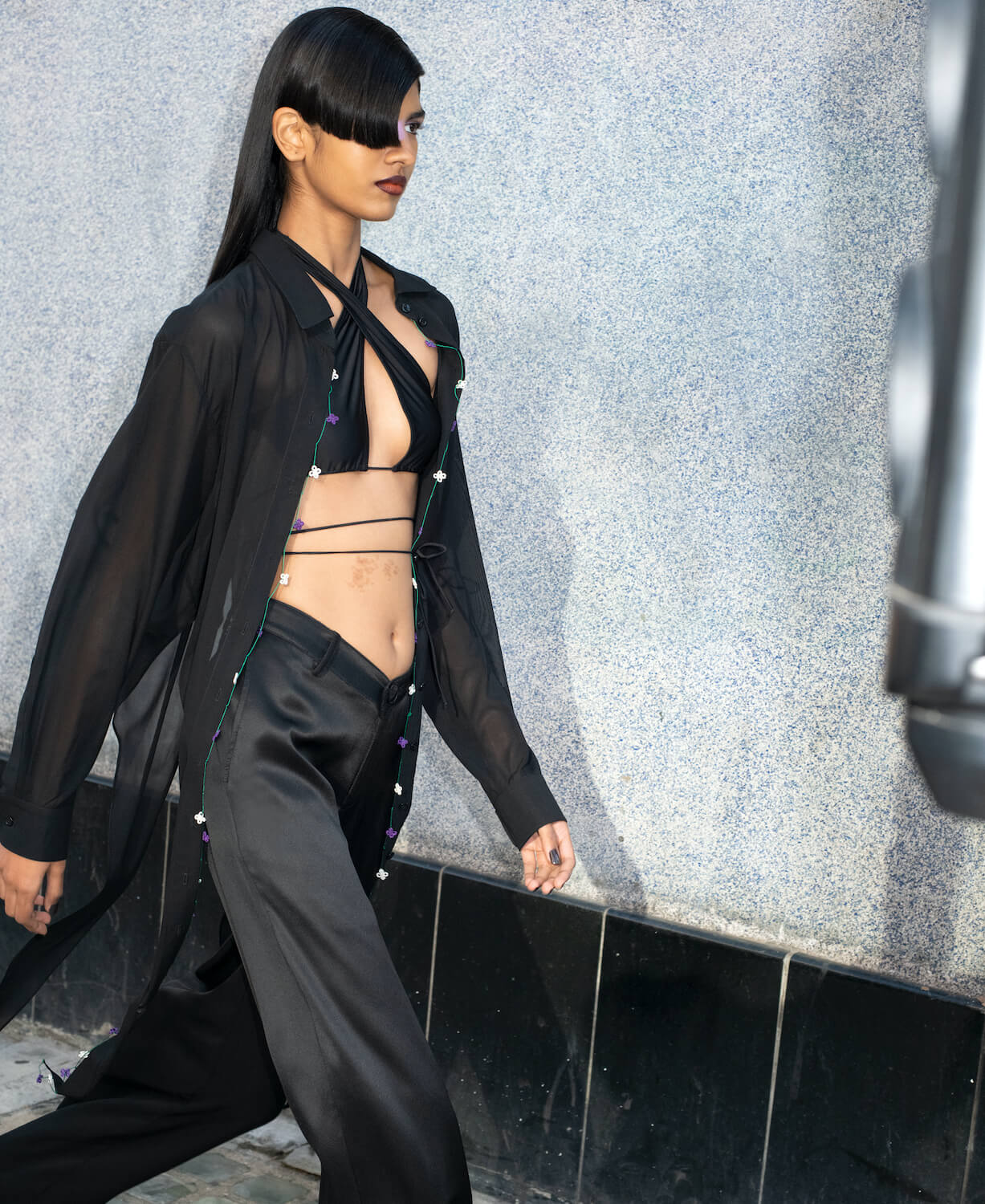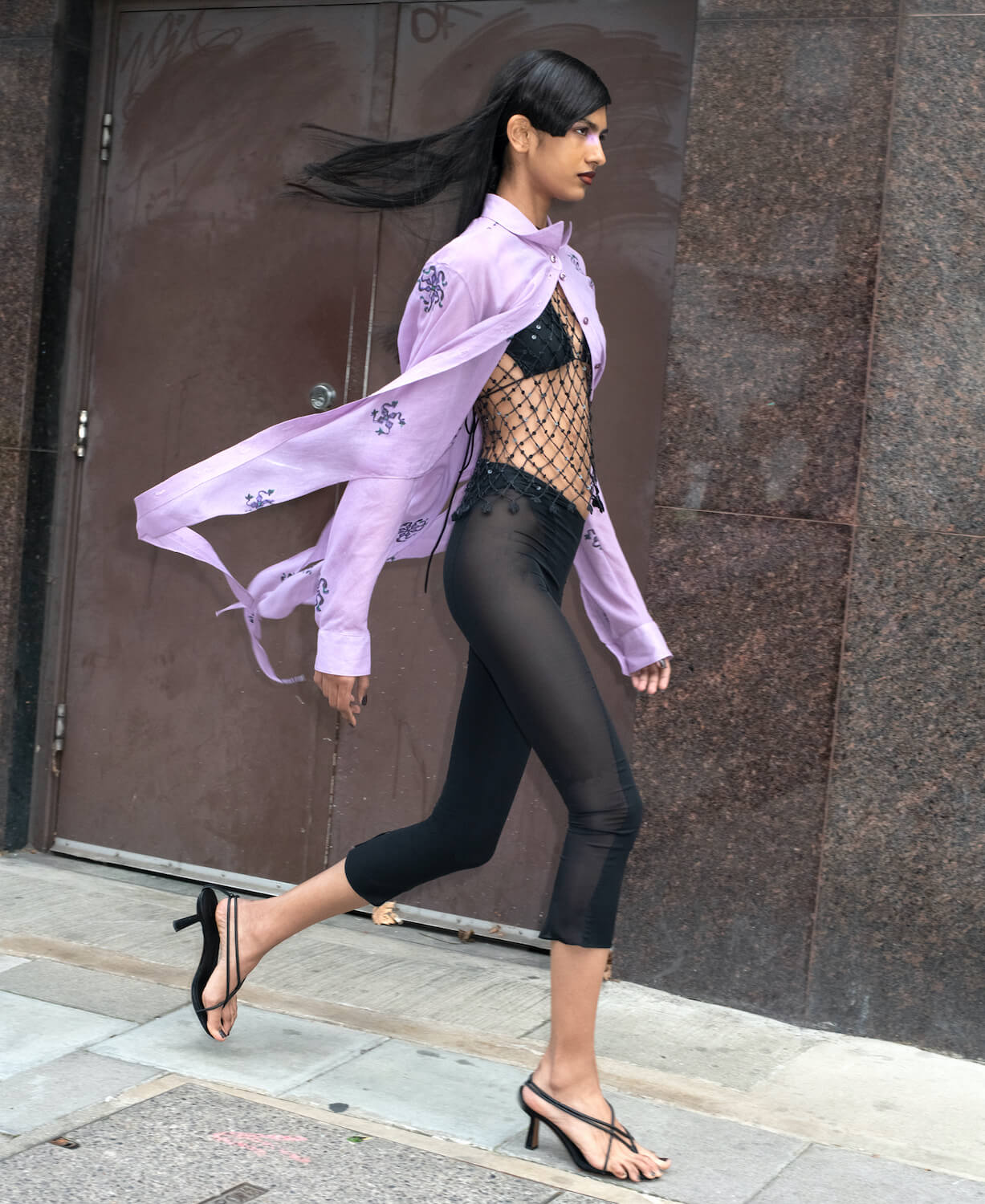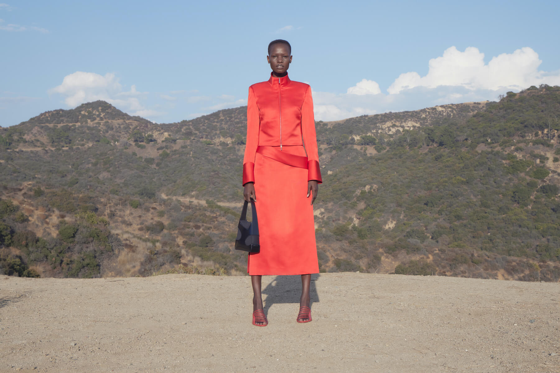 Strutting the city streets, Supriya Lele’s ladies wear luxuriously liberating garments that protect and celebrate the body inside her SS23 campaign. Shot by British photographer Jack Day outside and around the designer’s South London studio, her effervescent, naughties-nostalgic silhouettes dance. Lele’s classic codes are rife through the collection, apparent in the luscious drapery and fluid formations, but she also adds boxy coats and for the first time ever shirting into the mix bringing on a new level of maturity. It also features a confident colour palette of cerulean, amethyst, fuchsia and cornflower hues, riffing on the traditional dress of Lele’s Indian heritage. Fearlessly feminine and somehow sporty, despite its being built of sarong skirts, halterneck tops, mini dresses and capri pants, the collection is sure to fly off of the shelves.