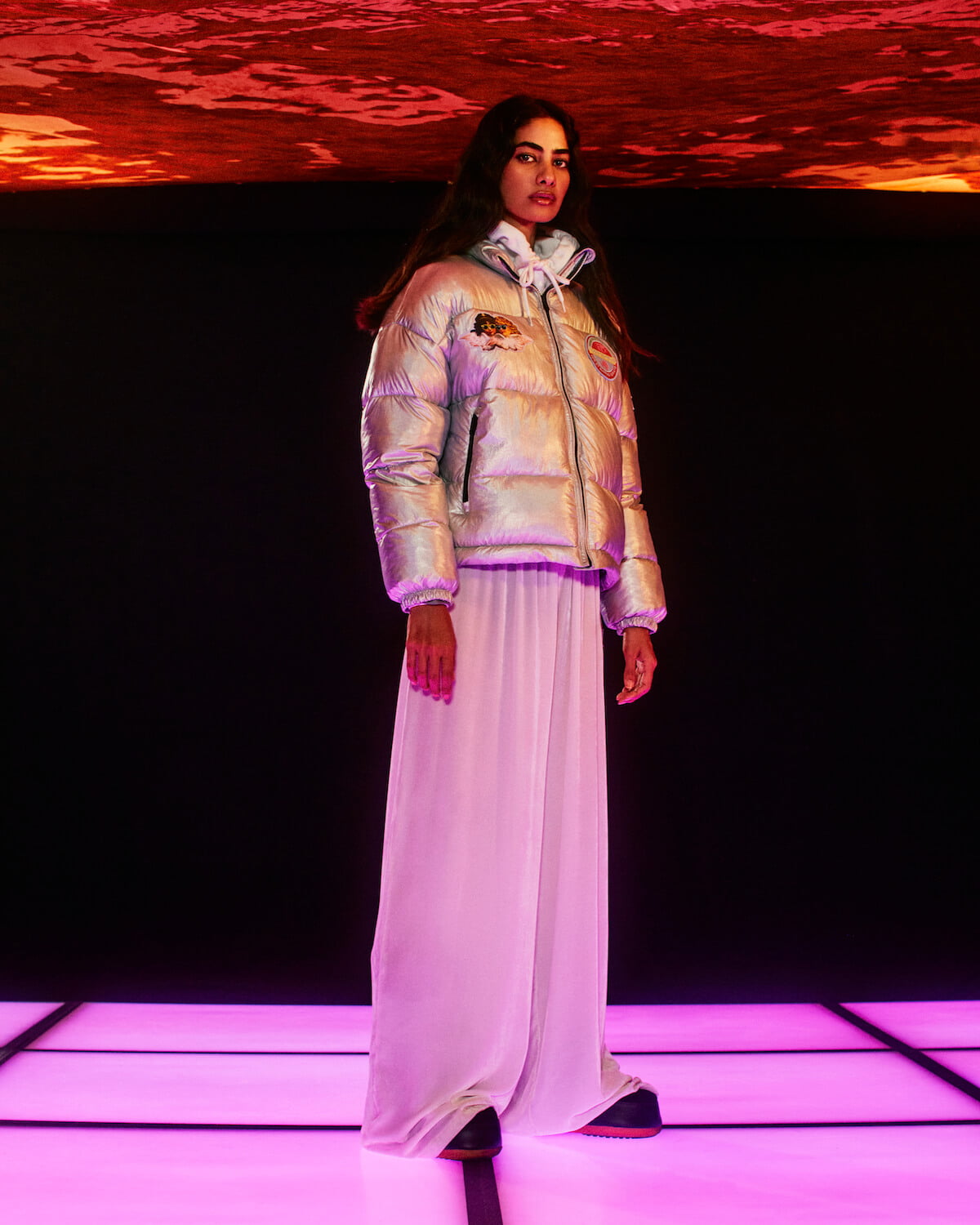 Twin Italian brands Napapijri and Fiorucci have just joined forces for a second time, transforming the spectacular outdoors into a dazzling disco dancefloor for their sophomore drop. It’s a high spirited collection, featuring holographic puffers, hot pink eco-fur, puff-ball beanies, and graphic fleece sweat sets. Patchwork depicting Fiorucci’s iconic angels and the Napapijri logo are peppered throughout and Napapijri’s first and most famed style, the Skidoo anorak, is reimagined too. Every single fun-loving number is ultra-soft, cosy and colourful – essentially, its uplifting outerwear for lousy weather. “I wanted this collection to transport it’s wearers, whether that be into the mountains or up into space” said Fiorucci’s artistic director Daniel Fletcher in the collection notes. Shop the collaborative collection here.