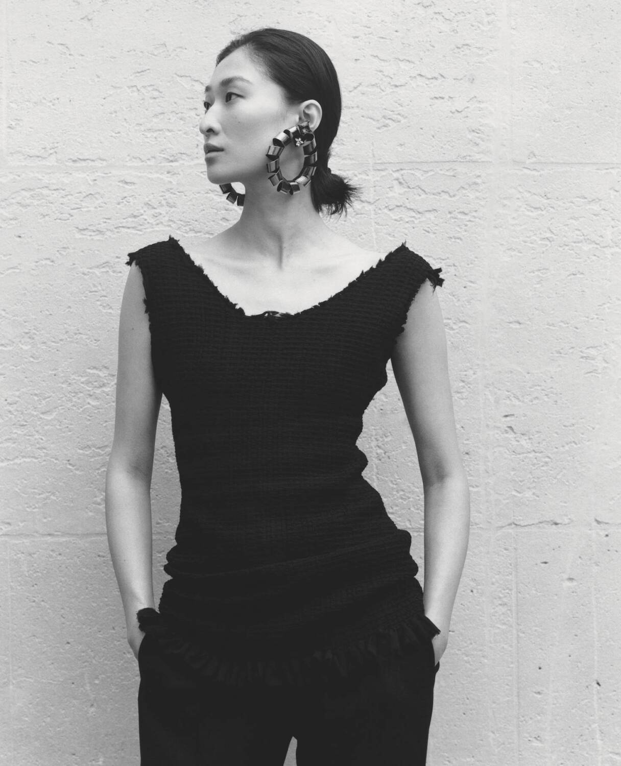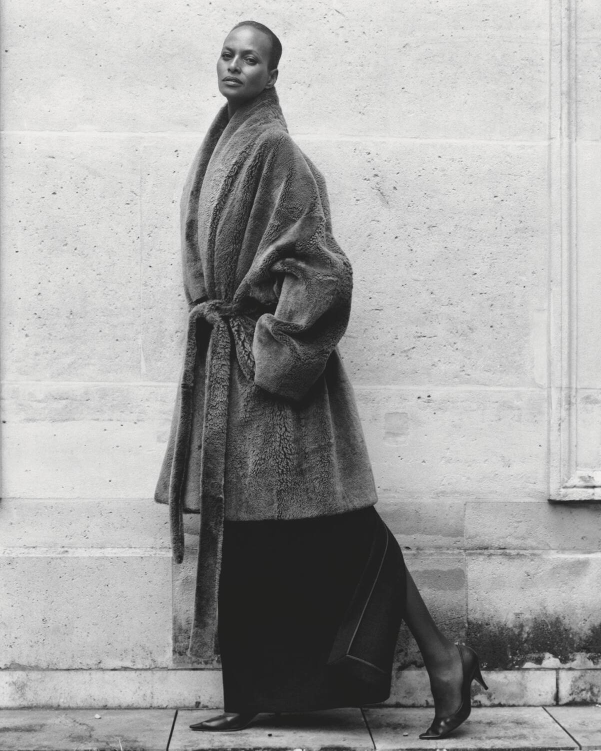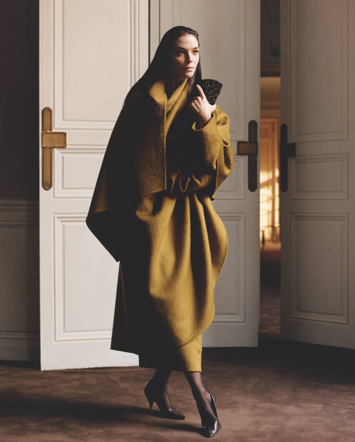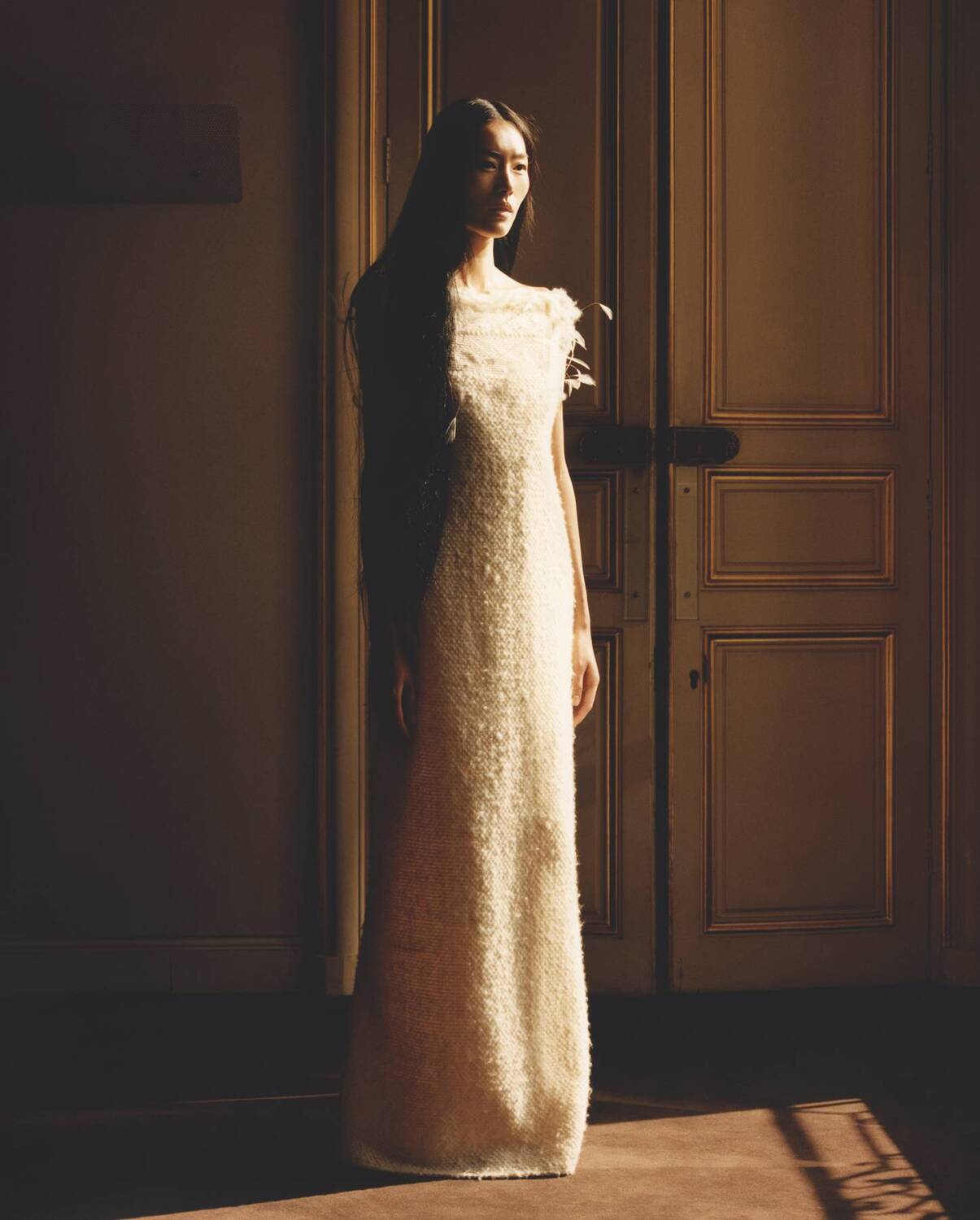 The Row’s FW24 show took place amid the rococo interiors of a villa on the Rue des Capucines in Paris, with some attendees no doubt surprised that a no-phone policy was being applied to proceedings. The label’s founders, Mary-Kate and Ashley Olsen, wanted their audience to fully immerse themselves in their design machinations, and who could blame them? The parade of perfectly constructed coats paired with bodice dresses and the models who were wearing them deserved everyone’s undivided attention. Our forever favorite Kristen McMenamy strutted in a structured, pleated beige gown, her signature snow-white locks flowing behind her, while Mica Argañaraz and Rianne Van Rompaey wore long wool coats effortlessly draped in that very Olsen-esque manner. The casting director Ashley Brokaw had added some newer faces to the lineup too. Particular standouts were the Chilean model Sara Caballero in a long black off-the-shoulder dress and Awar Odhiang in a silver-bell headpiece. As we reach the apex of social media usage, quieting our phones to live in the Olsens’ world for a moment isn’t such a bad thing.