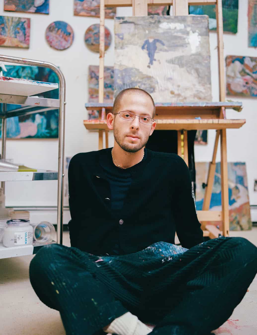 Adrian Schachter considers himself, first and foremost, an artist, and his brand, Adrian Cashmere, an extension of his painting and ceramics practices. “I think of myself as an outsider fashion designer,” says the son of longtime downtown New York art world luminaries Kenny and Ilona Schachter. “Painting, for me, is more alchemical, messier, and more of a tightrope walk. When I design clothing, even though I think of myself as the primary wearer, I’m always more aware of the dialogue with other people, [as they’ll] have this intense physical interaction with the clothes,” he adds. “Painting feels more personal.”