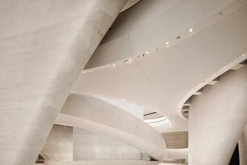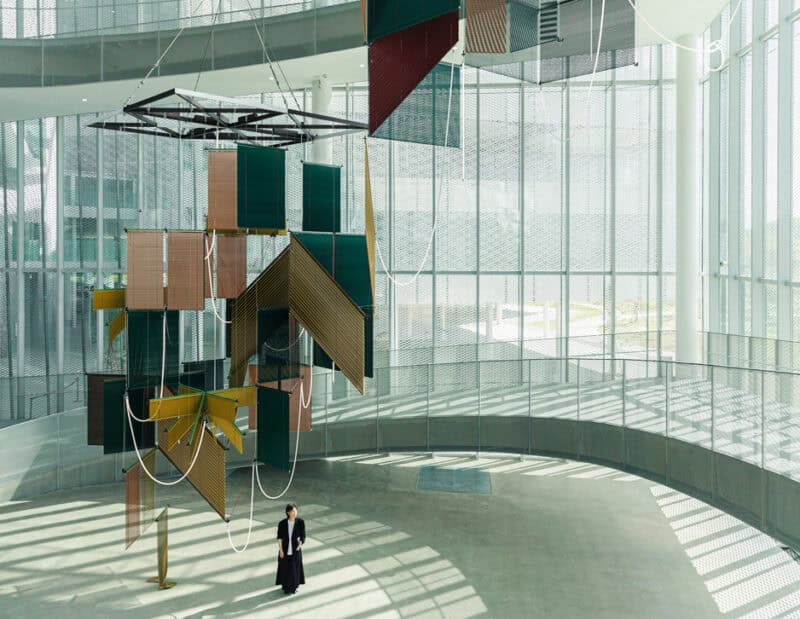 The futuristic cultural complex designed by Sanaa stitches together eight mesh-cloaked cubes that appear to float over a city park. The name is a portmanteau of museum and library and is thanks to the merging of Taichung Art Museum with Taichung Public Library: a new educational hub evoking weightlessness and free flow through light, fluid curves, and soaring volume. Across the eight galleries, visitors will find interactive exhibitions, site-specific installations, and a multi- disciplinary residency program.