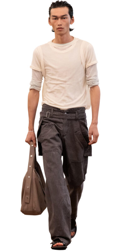 Eckhaus Latta’s latest outing proves the cult New York label can do sleek just as well as kooky. Filmy layers, workwear pants, and peekaboo cutouts nod to ’90s downtown grit, but filtered through a sharper, sexier lens. Arty, unfussy, and very now. J’adore.