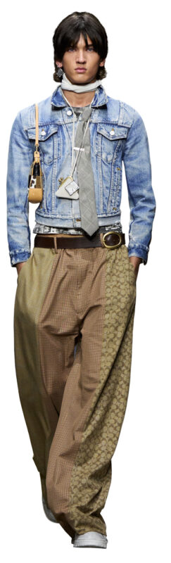 Stuart Vevers’ spring Coach collection hits the sweet spot between lived-in and polished. Think shrunken leather jackets, oversized blazers, swooshy pants, and a joyful tangle of necklaces. It’s toss-it-on- and-go downtown style, perfected, and anchored, naturally, by standout bags, including an oversized accordion clutch and a sleek cylindrical shoulder bag. Call it elevated ’90s grunge.