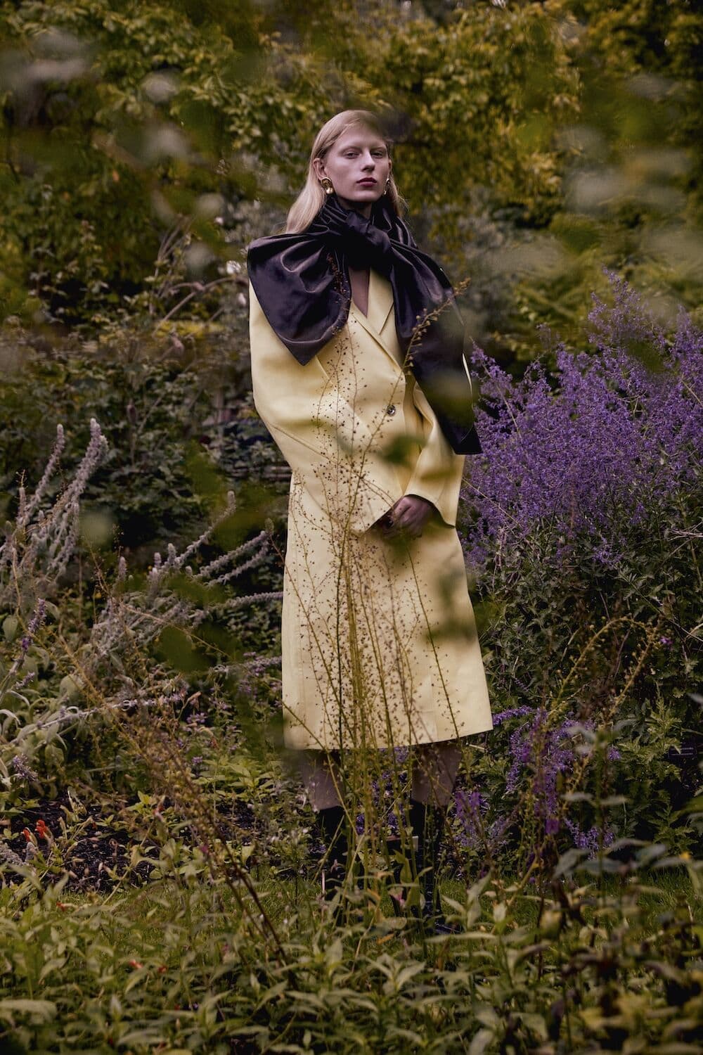 “I want to address everything about modern women. Strength, vulnerability, emotional intelligence, feeling powerful or very sexy. All of it,” she said. “It’s my natural instinct to go back to pattern-cutting, to craftsmanship. To cut, shape and proportion. It’s what I feel, how I work and what I want to do.” The tailoring was superlative. Impeccable hourglass coats and jackets, some worn as minidresses, some worn backwards. Nothing looked ordinary. Herringbone trouser suits came with ombré dipped hems. She also breathed a modernity into the red carpet. Floral embroideries blossomed on an ice-white column dress, while lashings of yellow and white tulle were directed into striking architectural geometries.