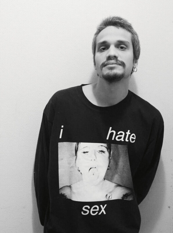 Ugo wears top by FRAGILE OSAKA X ADC303 X SOFIYA LORIASHVILI