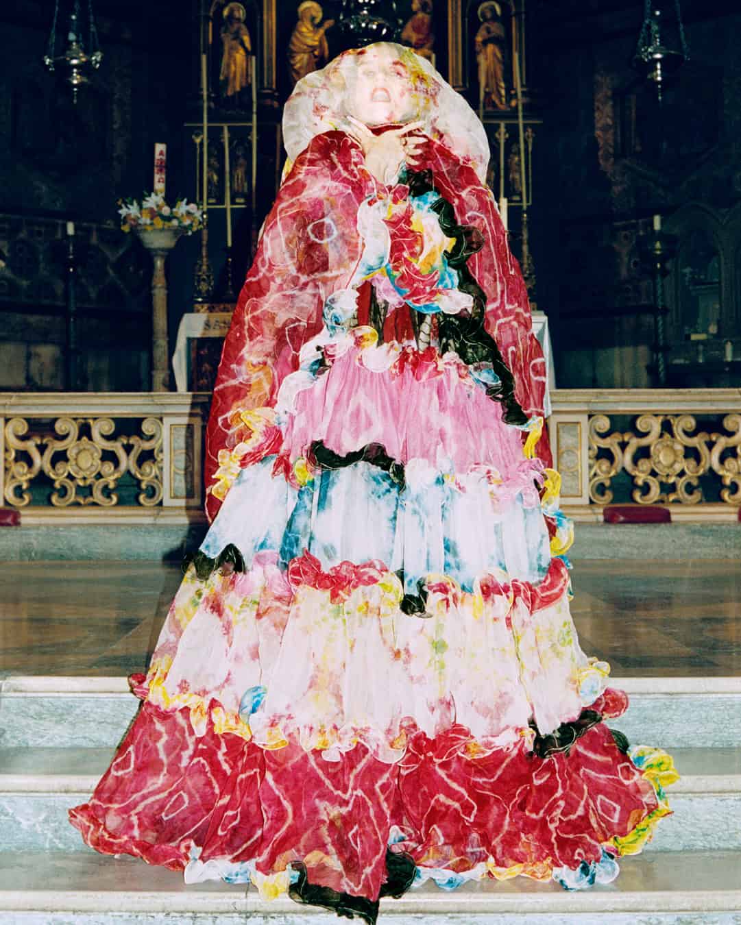 Three years ago, Linder photographed retired pornographic performer Mia Khalifa at the same church. Giving agency to a woman who had experienced such a lack of it forged a strong connection with Linder’s collage work, which she made using vintage pornography. “I have thousands of images of naked women shot by men who gave them fake names, so they are impossible to trace and talk to. They don’t exist,” she says. “Mia has been abused within that industry and is now a spokesperson for it, working at the level of law to change the way it works. She is so important.”