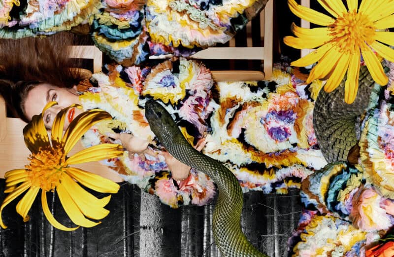Some of Linder’s most recent work has been similarly physical, in collaboration with her friend, the fashion designer Ashish Gupta. Whenever she is photographed, it’s invariably in an Ashish knit or a sequinned garment. She worked with him on his London Fashion Week show last September, unleashing dancers on the runway to create something that felt like a solstice ritual, and is working with him again right now. “I was in heaven from the second he asked me to work with him,” she says. “Last summer, I had done a performance with dancers and Ashish costumes outside on the [Scottish] Isle of Bute, then again in Edinburgh, and [he said] he’d never seen his clothes move like that.” With Ashish she is part pagan celebrant, part animateur. “We wanted to work with a large group of dancers just to see what happened. My son, Maxwell Sterling, is a composer, and he created the soundtrack. I asked the dancers to imagine it was 3am in a club, when any substances they had consumed were really kicking in, and they were feeling languorous and sensual. We created an alternative reality in real time.”