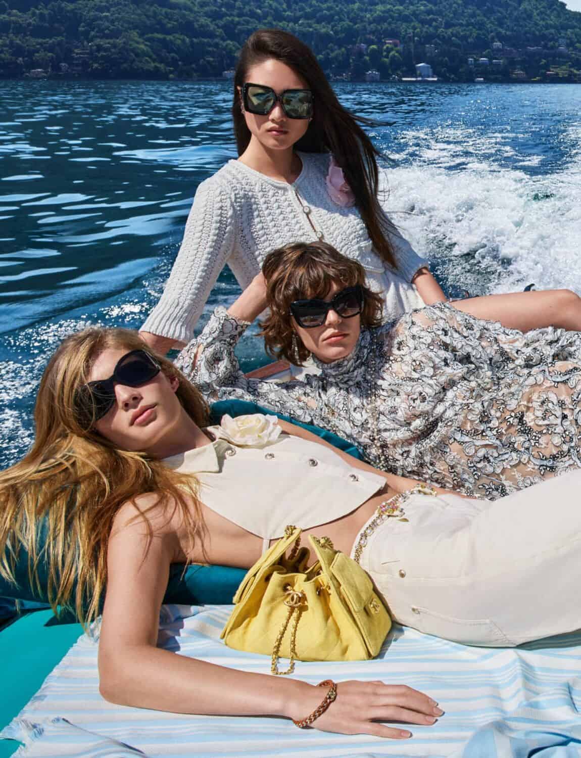 Get your sunscreen ready, as the Chanel cruise 26 ad campaign is giving winter escape vibes. Taking place on a sunlit Lake Como, where the show was staged back at the end of April, the images were captured by Mario Sorrenti. Set against the magnificent Villa d’Este, models Alix Bouthors, Ida Heiner, and Xu Wei showcase a collection that reimagines summer sophistication from ecru tweed coats with sailor collars, to sun-drenched yellow denim and fluid silk ensembles. Looking for some vacation wear? The pieces are in stores now.