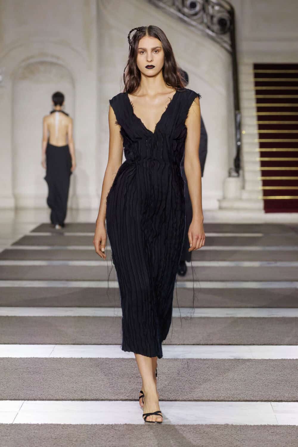 The tiny details made the most noise; the overstimulated mind could be found in frayed hems, cognitive dissonance in asymmetric materials and running thoughts in the intricate beadwork. The angles, cuts and twists added grit. Loose fabric and layers created billowing silhouettes. Gaping holes represented the distortion of memory.