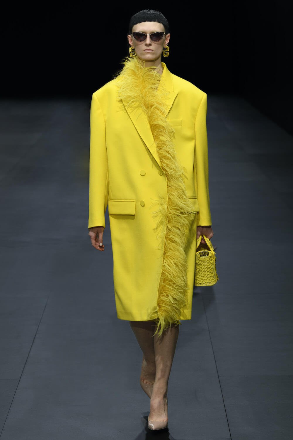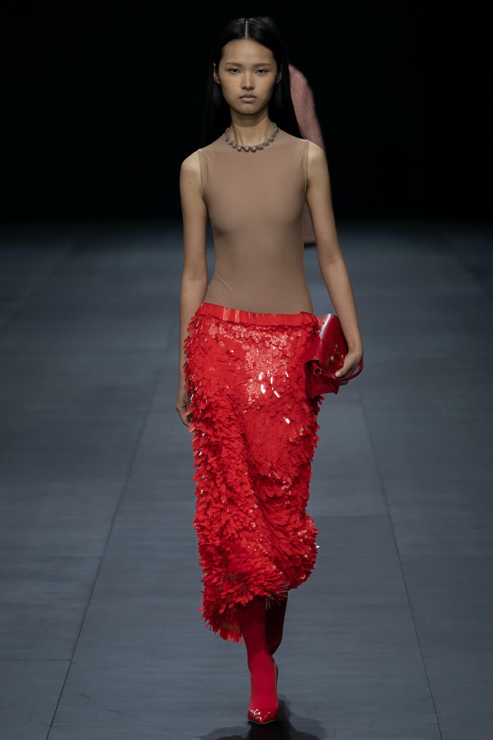 The other big theme of the collection was nudes. The designer puts inclusivity at the core of his work and he deftly played with a multitude of chic skin-toned looks that ran from ivory to black with many shades in between. Silhouettes were simple, pared down and fluid, either very short or long. Nothing was overwrought. A simple, pale flesh-coloured vest was paired with a yellow fishtail evening skirt to stunning effect.