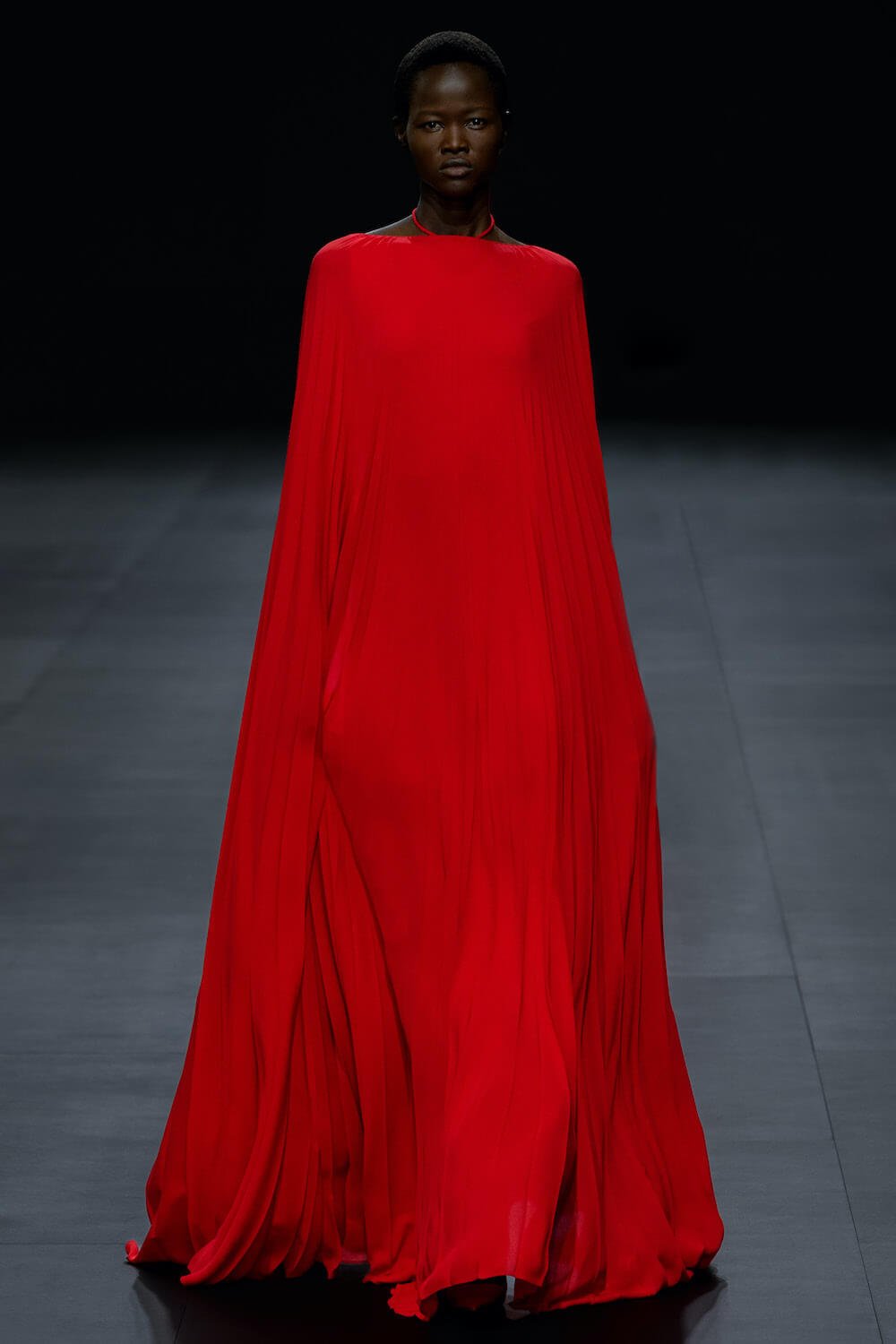 The looks had a sumptuous sense of minimalism thanks to the beautiful fabrics and perfection of cut. Even the fully sequinned exits felt uncomplicated yet impactful. Many had fluttering capes attached, which only added to the sense of flowing, breezy elegance and movement. V impressive.