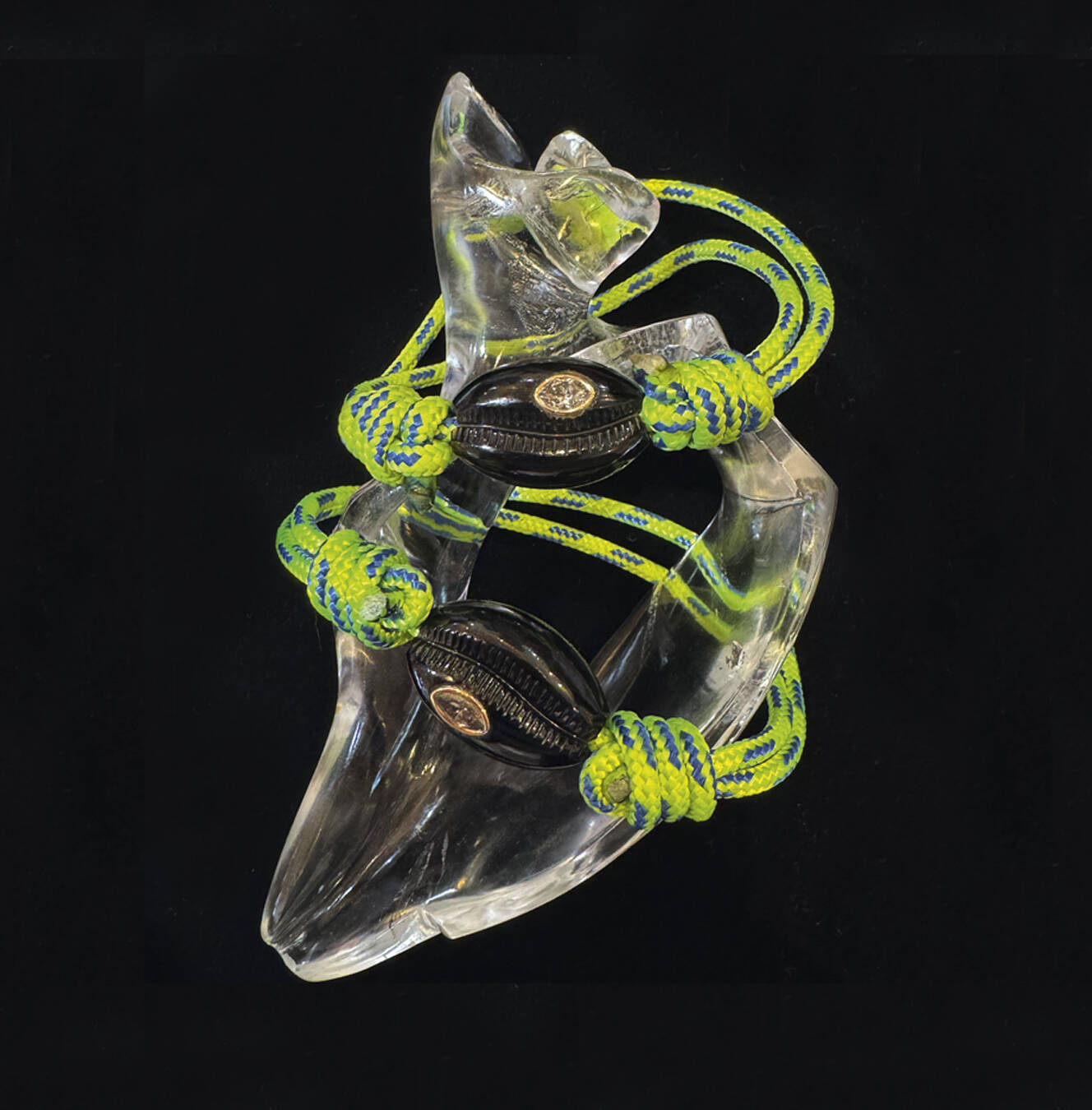 I clock chokers as a trend as I head into the ballroom and see Eugenie Niarchos’s Venyx collection. Her fixed collars hang with foil-backed pendants of aquamarine. Niarchos considered her family history of shipping in her new collection, working with a company which reclaims plastics harvested from the ocean waters to make beads. These were studded with diamonds and mixed with Murano glass and pearls. The resulting pieces are hippie chic, perfect for a gig by Dead & Company (a band fronted by John Mayer and former members of the Grateful Dead), which Niarchos tells me she’s attending soon at Sphere, the futuristic ball-shaped concert venue next door.