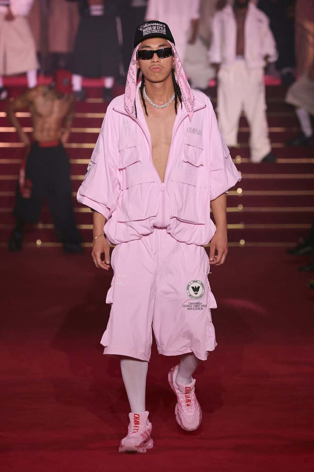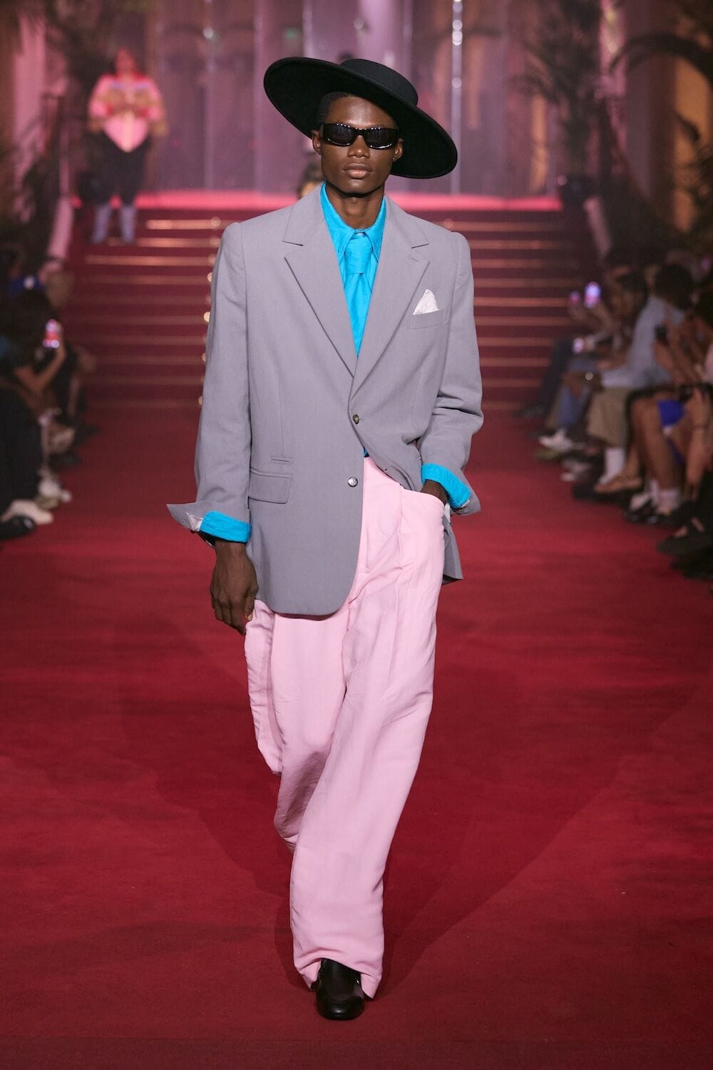 The craftsmanship was impeccable: Italian-made tailoring took centre stage, from the men’s relaxed yet refined ‘Chilango’ blazer to the sharply cinched, strong-shouldered ‘Nuevo Staple’ blazer for women. Each silhouette – in a palette of ‘Chicle’ pink, ‘Papaya’ orange, ‘Red Hot’, ‘Bourdin’ blue and ‘Butter’ yellow – felt like a deliberate act of empowerment, balancing softness with structural precision.