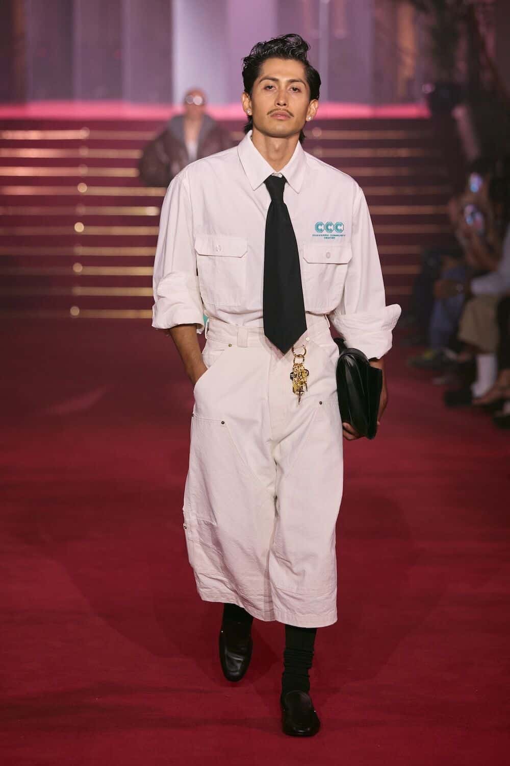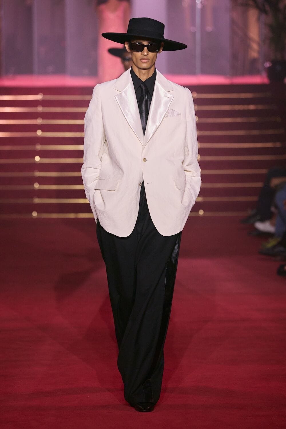 Womenswear channeled the cinematic worlds of director’s Pedro Almodóvar and Wong Kar-wai, with trench dresses and pencil skirts radiating fierce independence and sensual power. The men’s offerings were equally compelling, balancing ease with edge, marrying fluid silhouettes with sharp pops of colour that challenged traditional masculinity and invited vulnerability.