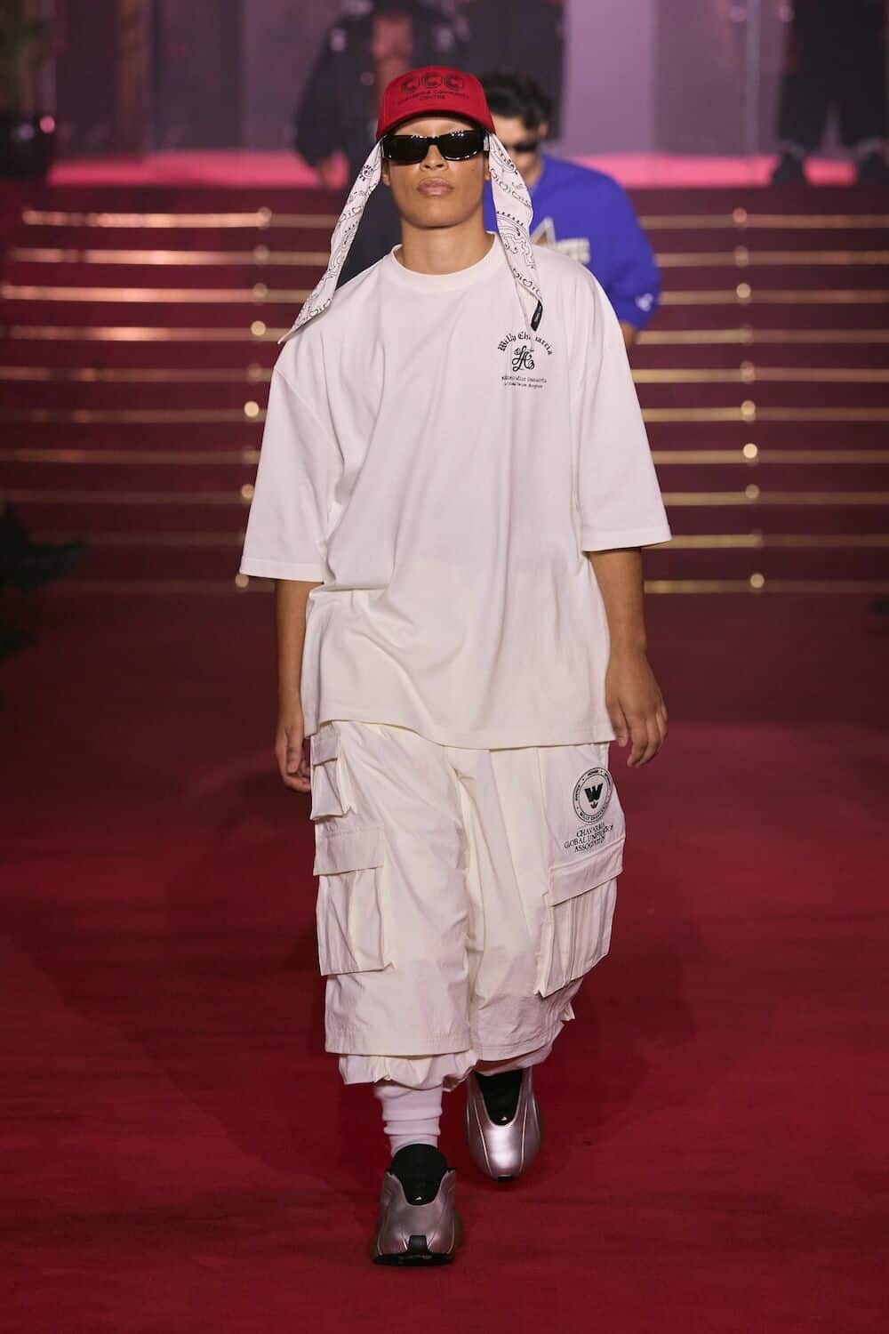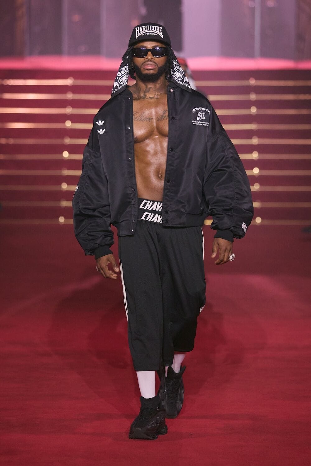 The atmosphere was charged, thick with urgency and an air of reflection as Willy Chavarria’s SS26 show Huron began. An almost reverent silence flooded the runway as 35 men appeared – clad in crisp, stark white ACLU T-shirts – a solemn, heart-stopping tribute to the Salvadoran immigrants caught in the crosshairs of injustice. This opening moment was a bold act of bearing witness, a call to recognise the human cost behind headlines. And from this raw, powerful beginning, the collection emerged – an intricate tapestry of resilience, identity and uncompromising truth.