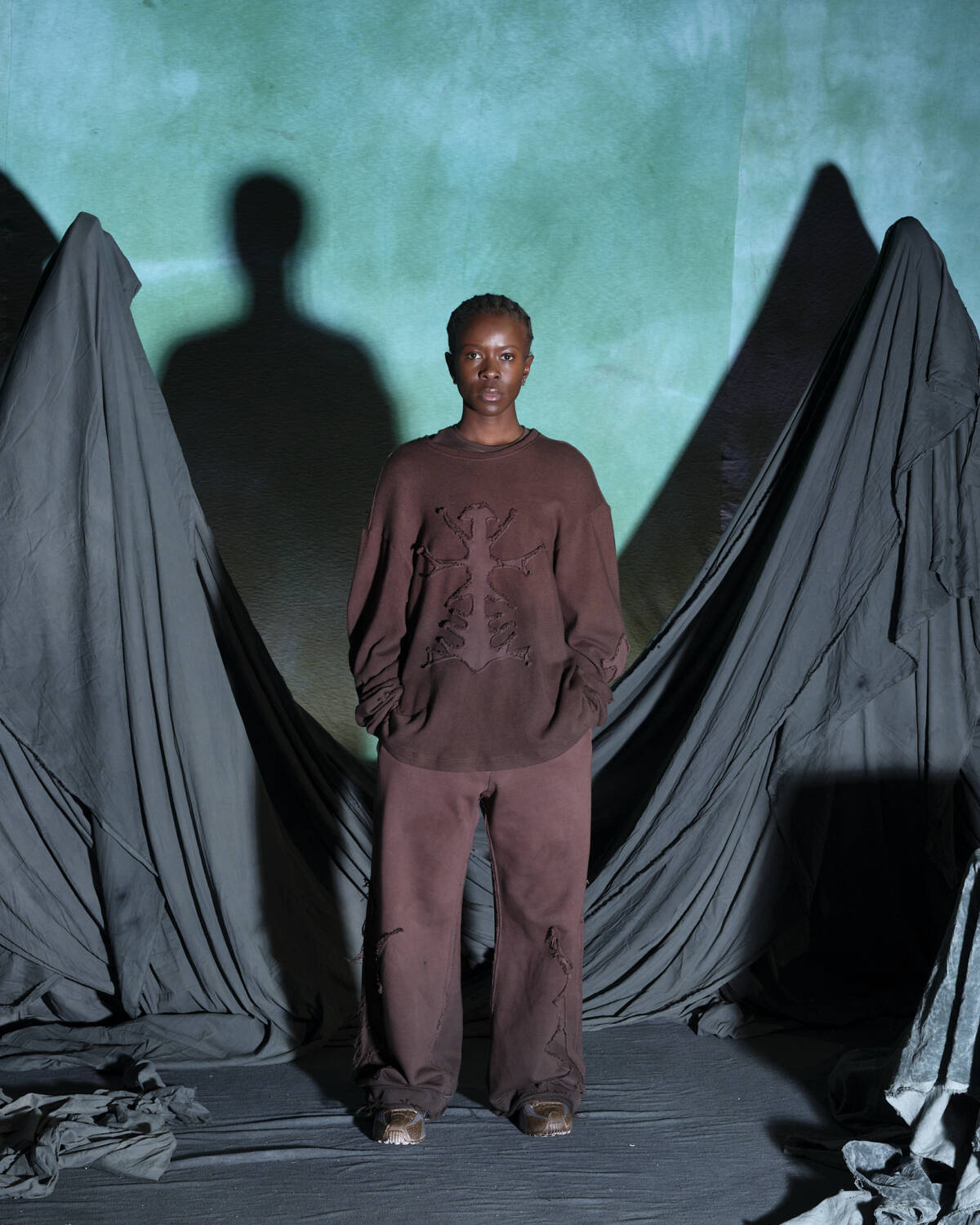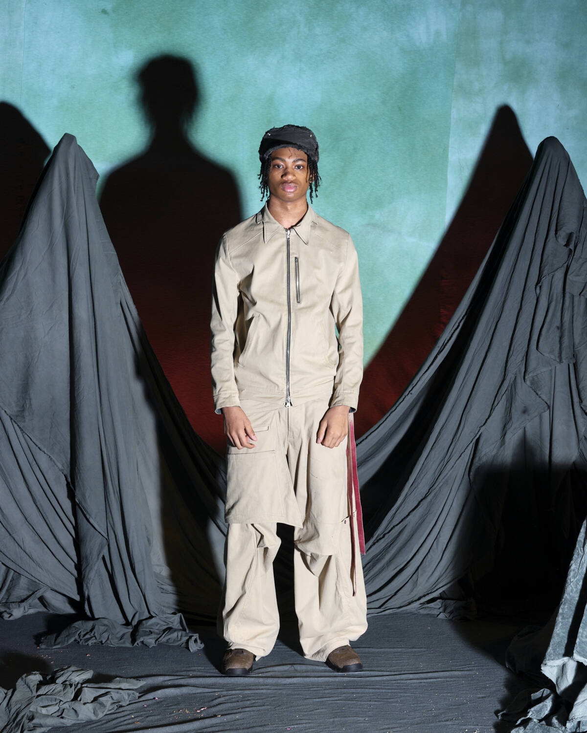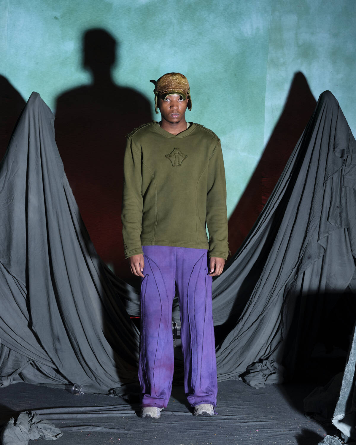 Not many designers are world builders in the same way as Yaku Stapleton. With each season, the young designer pads out his Afrofuturistic narrative that little bit more, carving out fantastical stories that have captured the hearts of those who swarm to his immersive presentations. For AW25, the London-based designer and BFC NewGen recipient took the characters he has spent the past few seasons developing on a new journey. This time, they prepare to “step into the unknown”. Each character, based on different members of Stapleton’s family, have now, as the show notes state, mastered their crafts; hunting, camouflage, survival skills etc. They’re now ready to face whatever lies ahead.