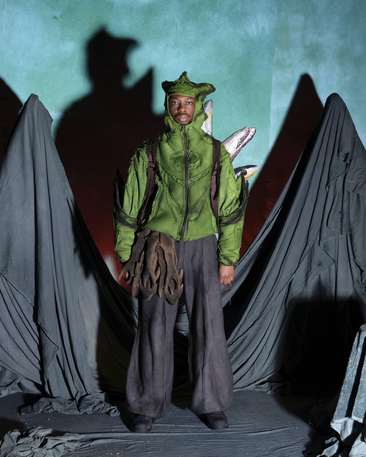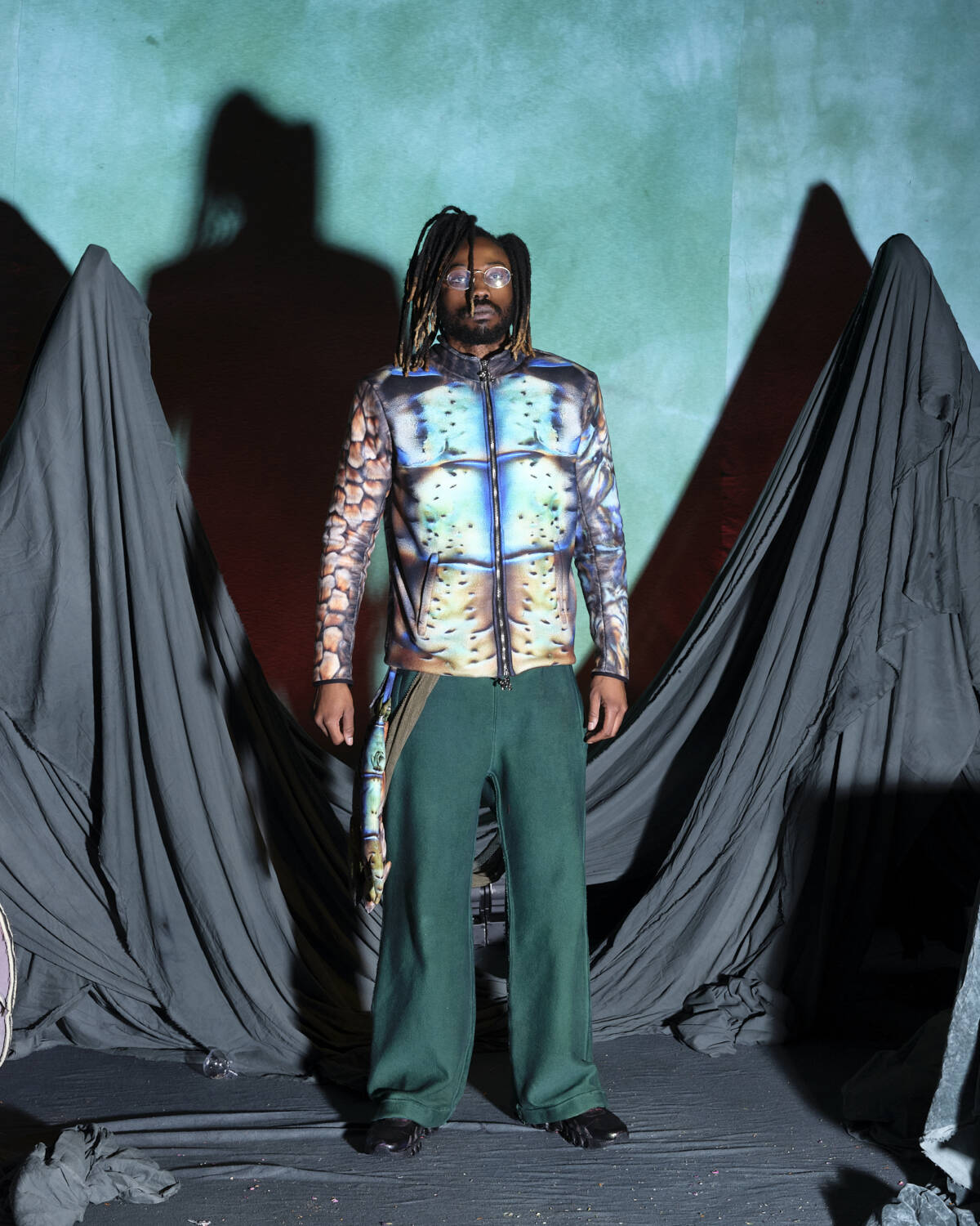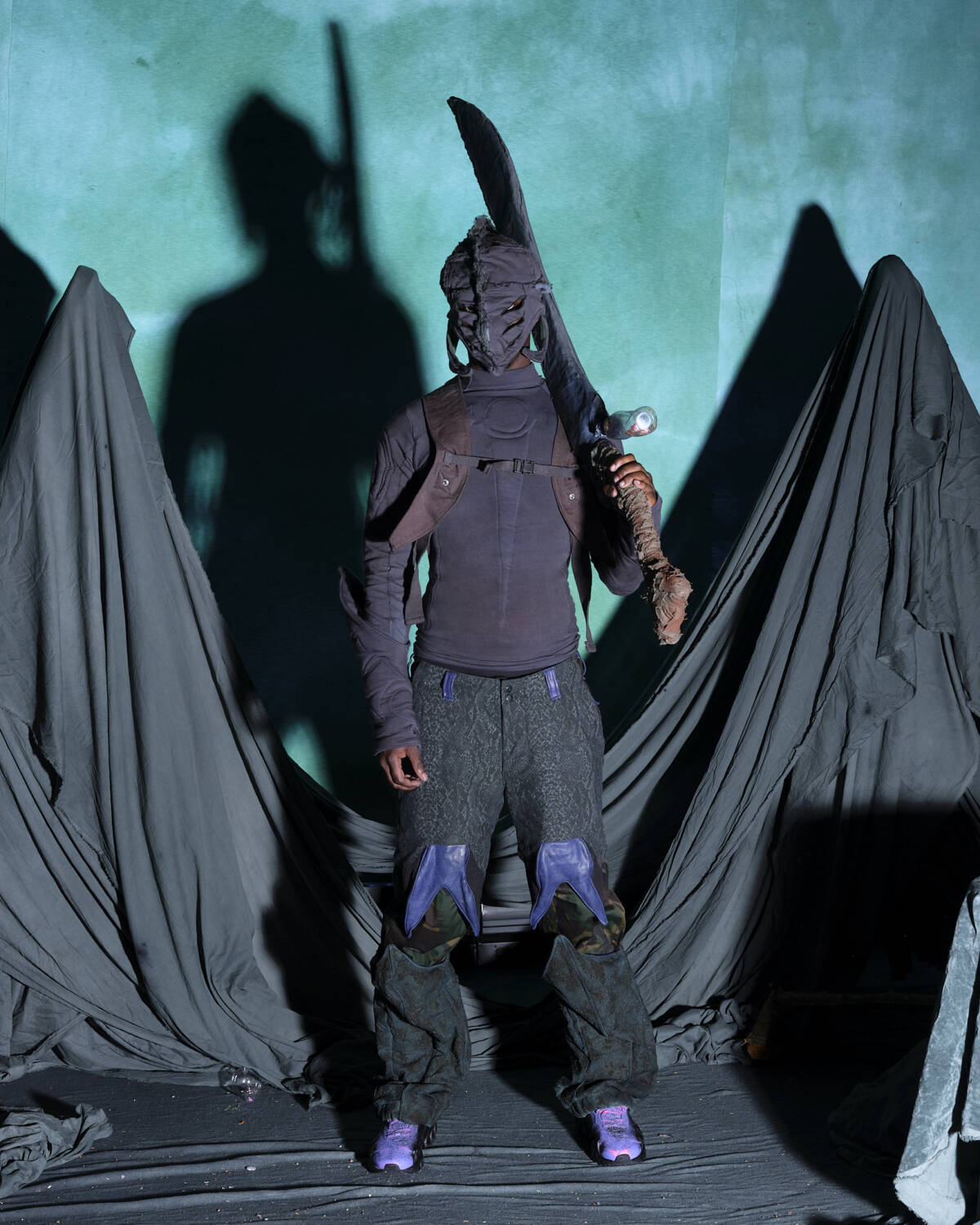 Not many designers are world builders in the same way as Yaku Stapleton. With each season, the young designer pads out his Afrofuturistic narrative that little bit more, carving out fantastical stories that have captured the hearts of those who swarm to his immersive presentations. For AW25, the London-based designer and BFC NewGen recipient took the characters he has spent the past few seasons developing on a new journey. This time, they prepare to “step into the unknown”. Each character, based on different members of Stapleton’s family, have now, as the show notes state, mastered their crafts; hunting, camouflage, survival skills etc. They’re now ready to face whatever lies ahead.