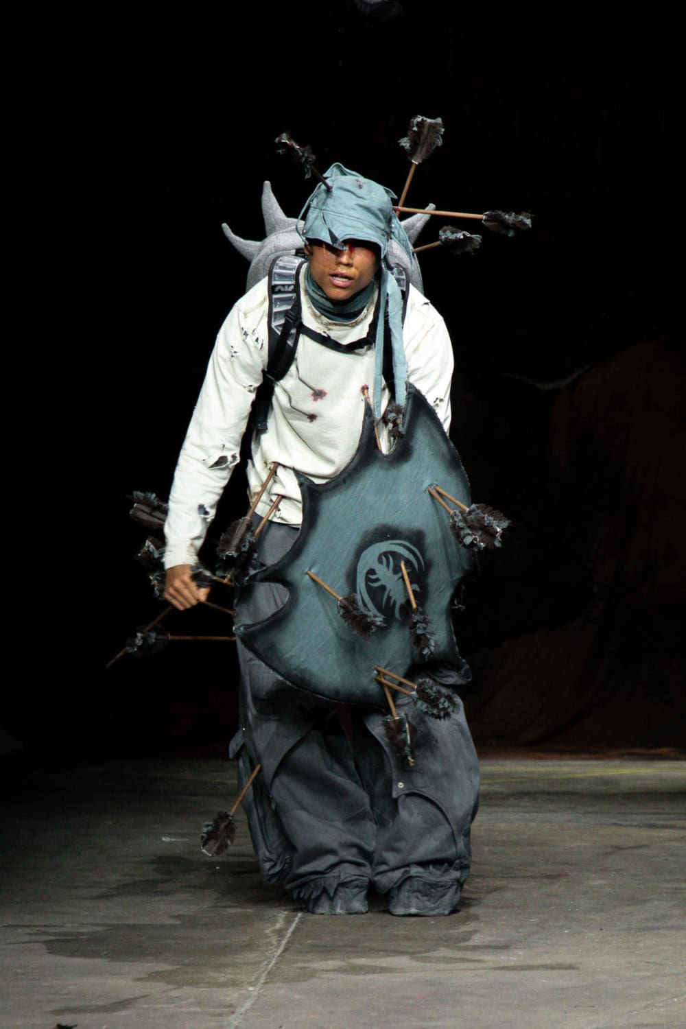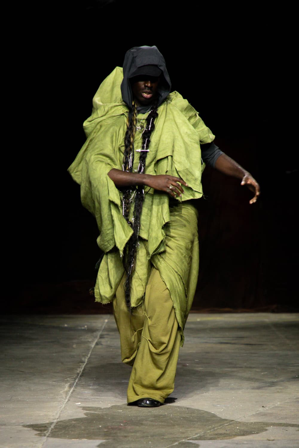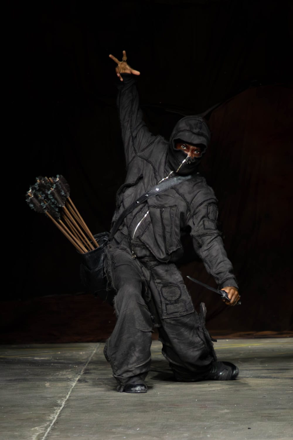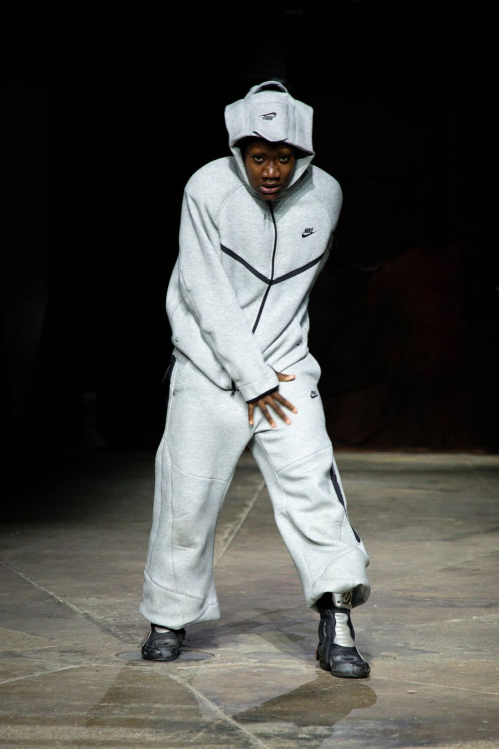 Entitled The Possible Family Reunion in RPG Space, the offering leaned on the brand’s go-to codes but with a flare for the dramatic. Dressed in oversized hoodies and rounded, moon-boot-like stompers, the models-cum-actors pulsed, popped, split and posed their way down the runway in a catwalk-like structure, despite Yaku being booked on the schedule for a presentation. It was smart – the Yaku team organised rough installments, so they could technically do a show multiple times over. It’s to be expected, Yaku is smart. You can see it in the details. Spikey game consoles, Bowser-esque backpacks, bow and arrows, faceless warriors suspended from the ceiling – the young talent knows how to tell a rich story. And AW26 left us keen to turn the page to find out what’s next.