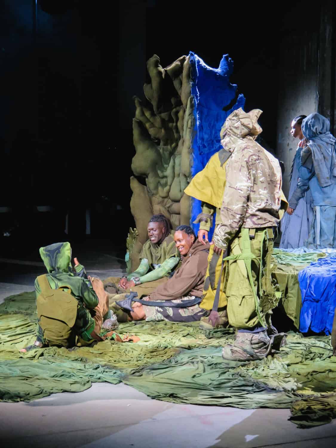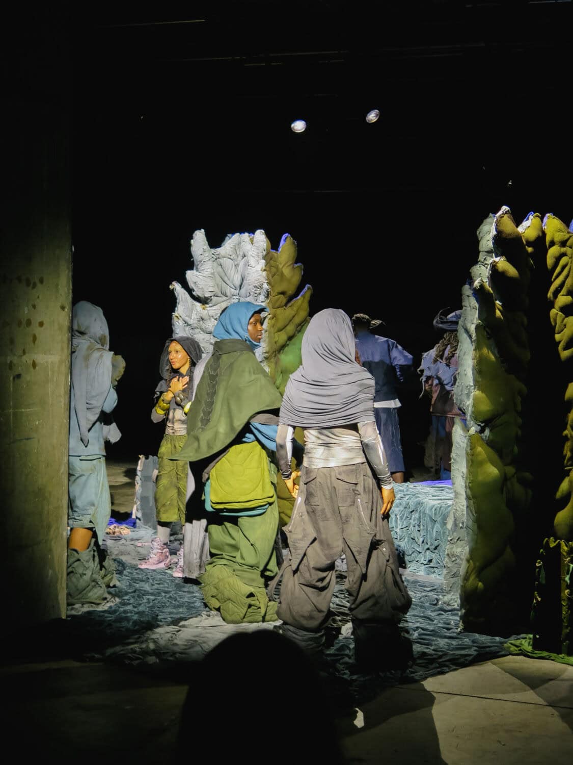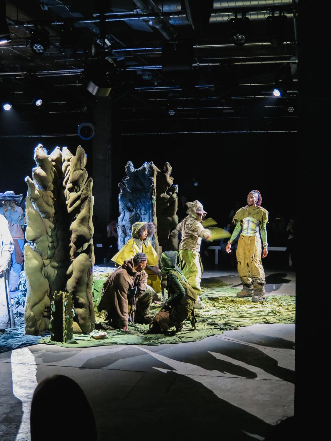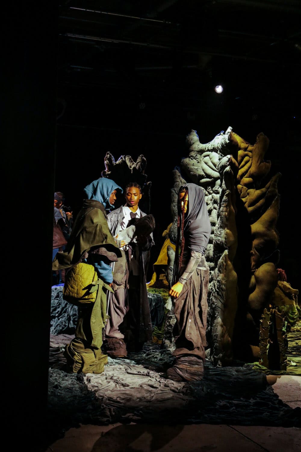 The silhouettes echoed the Télavani – figures drawn from pre-colonial Caribbean resistance histories. Their proportions became the design language and fabrics were dyed, burned, distressed – each one a surface for story.