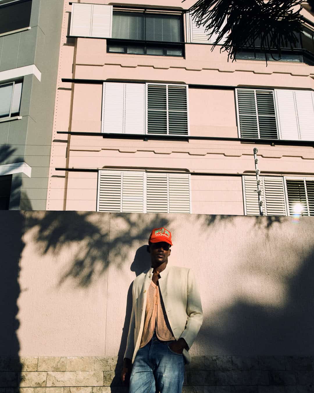from left: top and trousers by ZEGNA, shoes by PRADA and top by NIKE, shorts by GUESS