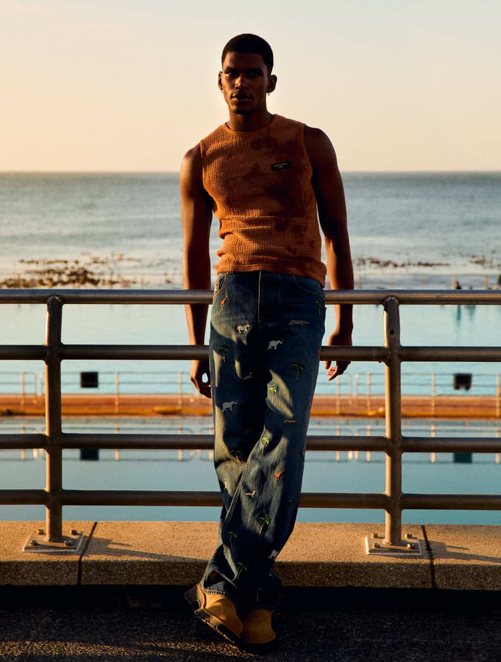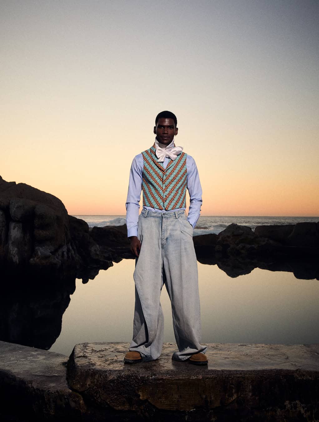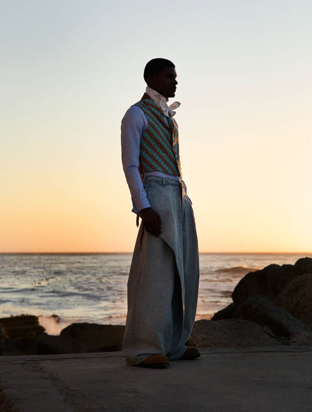 from left: shirt by PIACENZA 1733, shorts by GUESS, sunglasses by GUCCI and top and trousers by LOEWE