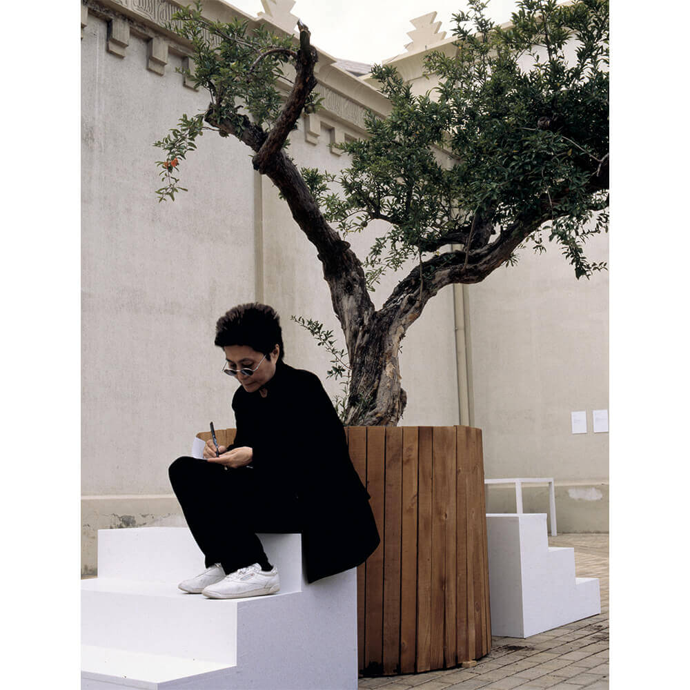 The thread of imagining and peace has existed throughout Ono’s work. In 1966, during her second marriage, to American film producer Tony Cox, she met John Lennon at the Indica Gallery in St James’s. He was bowled over, he later said, by the positivity of her exhibited piece Ceiling Painting/Yes Painting, which consisted of a ladder that one climbed to the ceiling where the word “yes” was printed in small letters, accompanied by a dangling magnifying glass that allowed the viewer to read it.