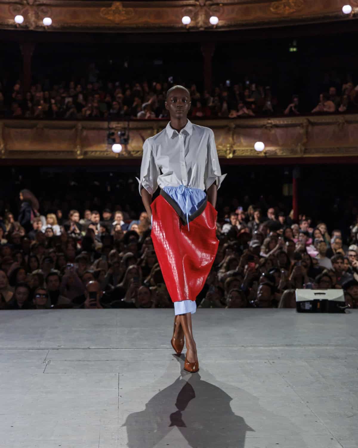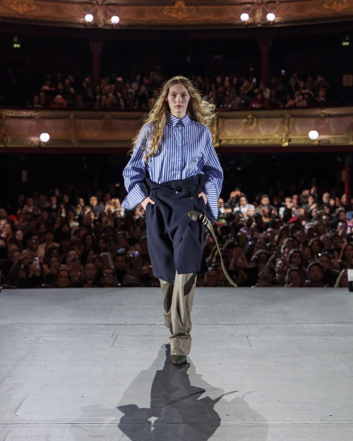 Paris, Tuesday morning: just a few steps from the Seine, tucked away from the weekday traffic, Zomer took to the stage – but not the kind you are thinking. Instead of a runway, the brand presented its fifth collection on none other than the 200-year-old stage of the Théâtre du Châtelet, hosted by LyasLa Watchparty. The audience? A selection of industry invitees joined by almost 2,000 freely-admitted attendees of all ages and backgrounds. That’s the magic of La Watchparty: no exclusive invitation, no secret location or first-row privileges – just a crowd of fashion enthusiasts joyfully coming together to watch and react to screenings of the major shows on the fashion schedule. But at Zomer, the show stepped away from the screen and into the actual venue.